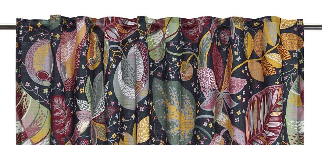 Multibandet är en flexibel lösning som gör att gardinen kan hängas upp antingen med fingerkrokar, räkor eller direkt på en stång beroende på vilken typ av veck och vilket fall man vill ha på gardinen.