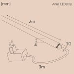 Anna LED-strip KIT kommer med plugindrivdon med monterad 3m kabel med av/på brytare. Remsan är 2 meter lång och kan skäras till önskad längd på skärmärken. Obs! Om remsan skäras är den inte längre IP65-klassad.