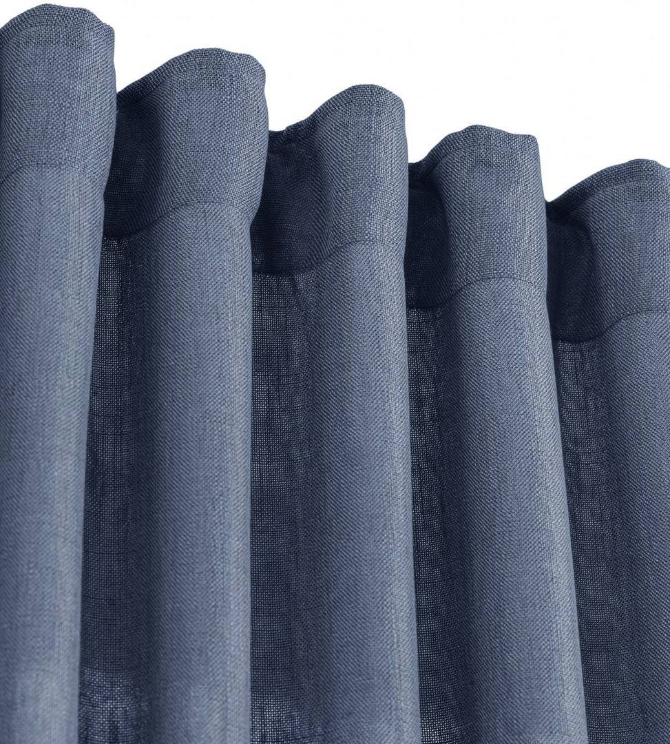 Gardinkappa på metervara i en matt kvalitet med tvättad känsla, med fåll upptill och nertill, multiband i ovankant.
