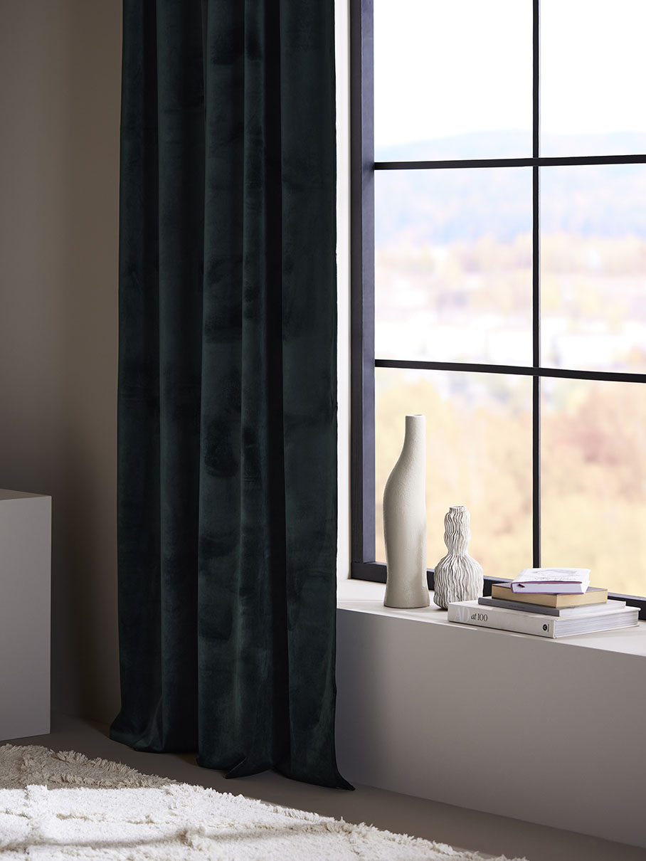 Klä dina fönster i lyxigaste sammeten och få ett vackert blickfång och en härligt hotellkänsla. Väven är slät och sammeten skimrar precis lagom. Eftersom väven är så tät ger den viss mörkläggande effekt.