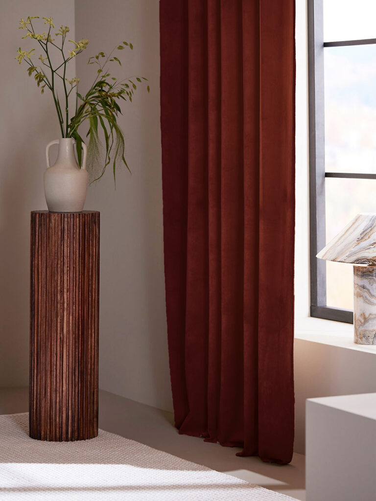 Klä dina fönster i lyxigaste sammeten och få ett vackert blickfång och en härligt hotellkänsla. Väven är slät och sammeten skimrar precis lagom. Eftersom väven är så tät ger den viss mörkläggande effekt.
