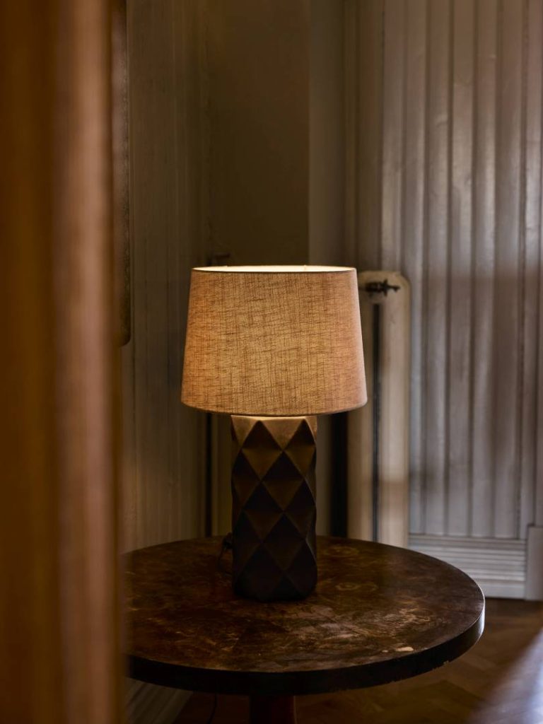 Lampfot i keramik. Lampfoten är handgjord och karvad med en honeycomb-effekt som skapar ett vackert djup och fantastiska ljusskiftningar. Vintage finishen gör att varje lampa blir unik. Passar med lampskärm 25-35 cm i diameter.