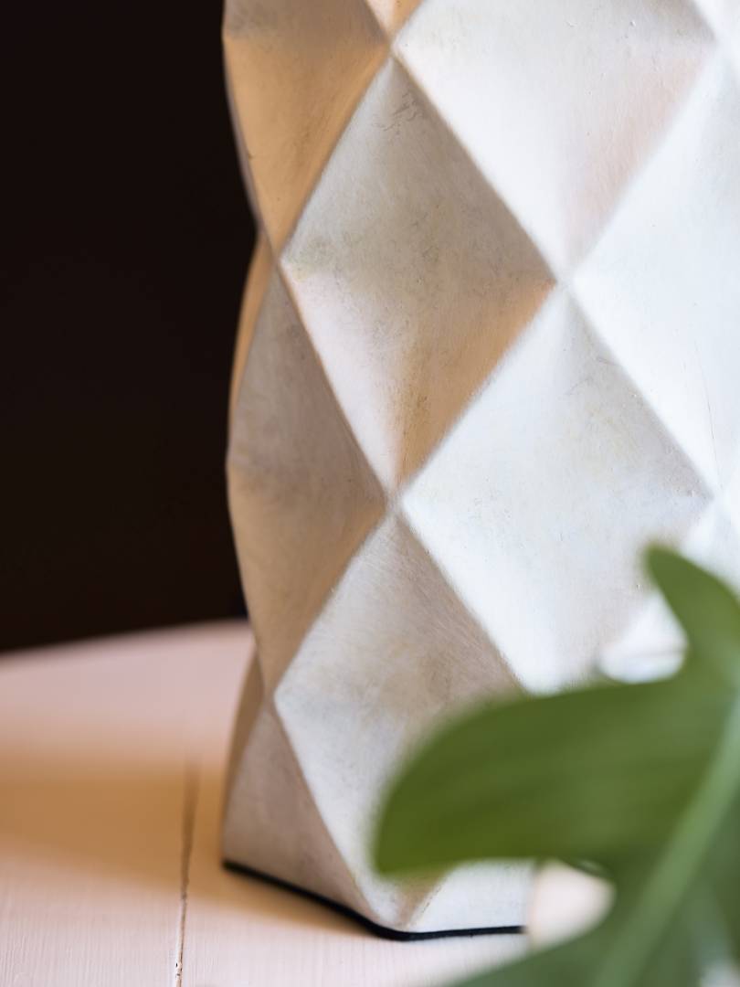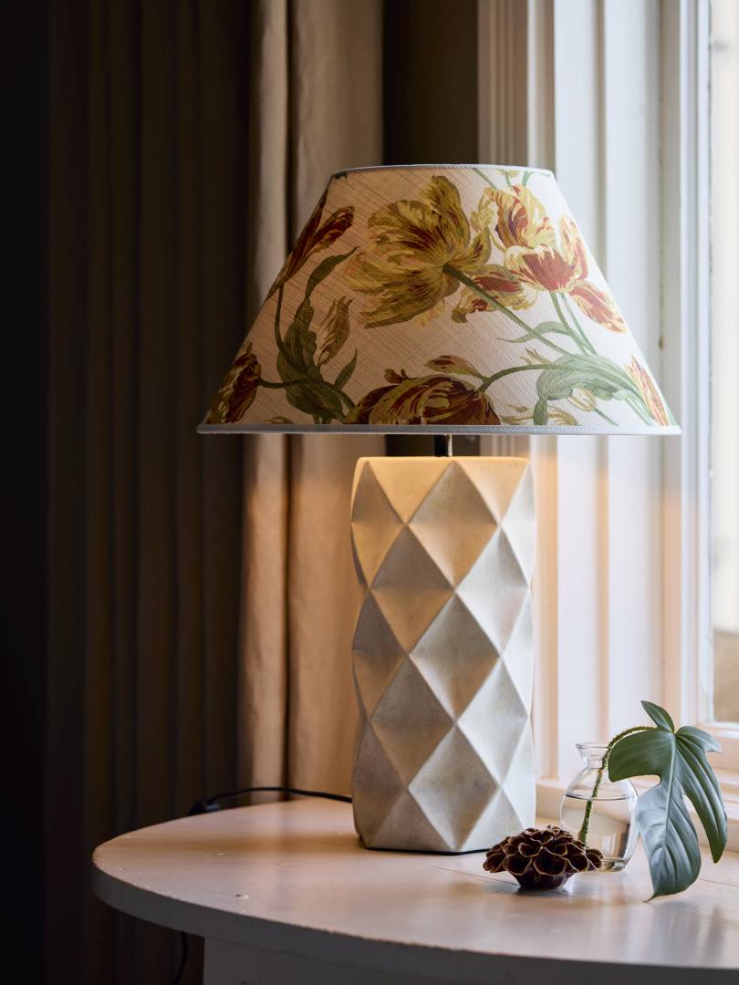 Lampfot i keramik. Lampfoten är handgjord och karvad med en honeycomb-effekt som skapar ett vackert djup och fantastiska ljusskiftningar. Vintage finishen gör att varje lampa blir unik. Passar med lampskärm 25-35 cm i diameter.