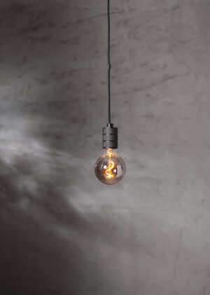 Zinkfärgad sladdställ med svart textilsladd, längd 350 cm. Väggkontakt. För inomhusbruk.