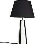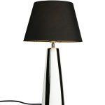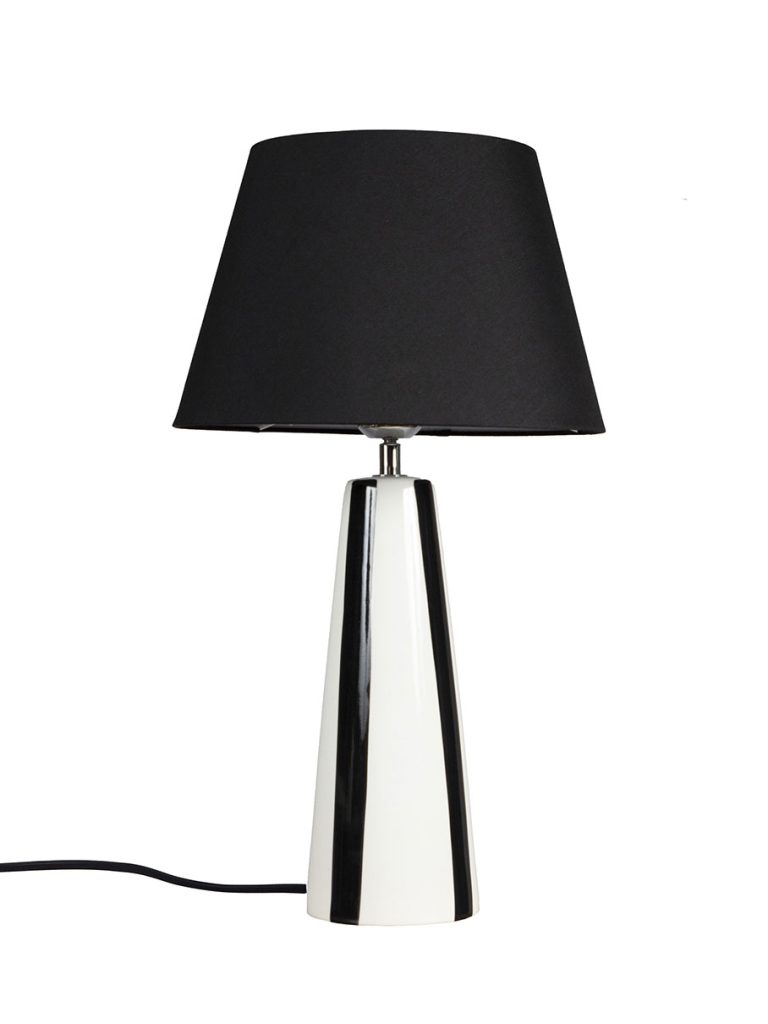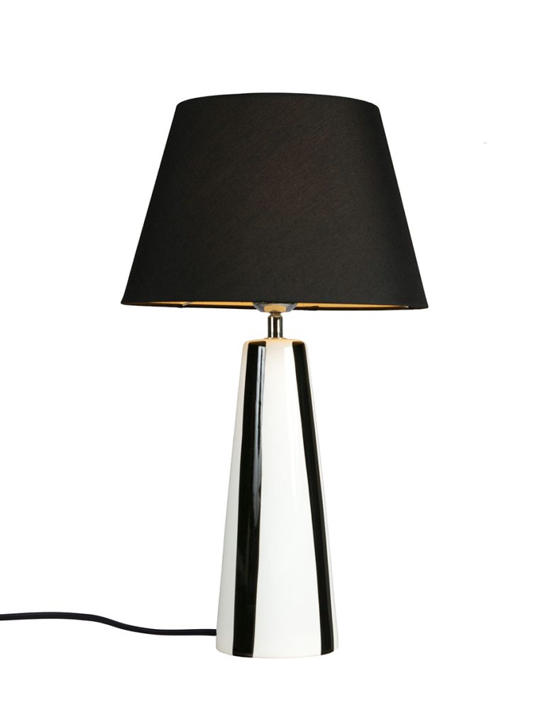 Leya bordslampa är en komplett lampa med matchande skärm. Den randika lampfoten i keramik har en handmålad känsla.