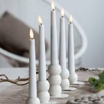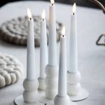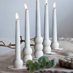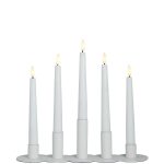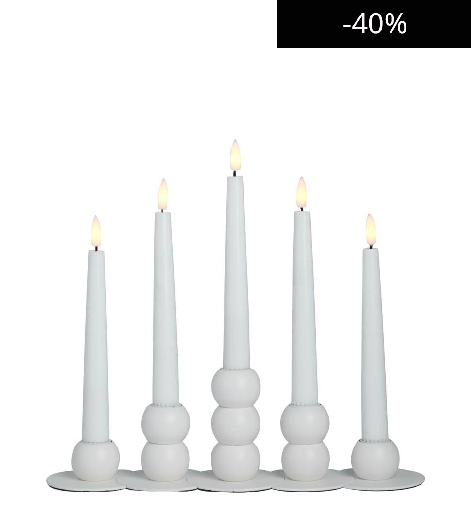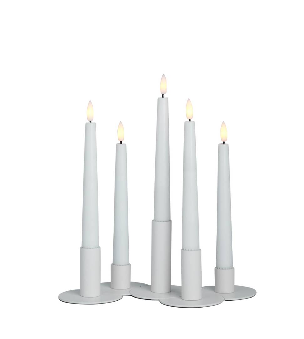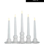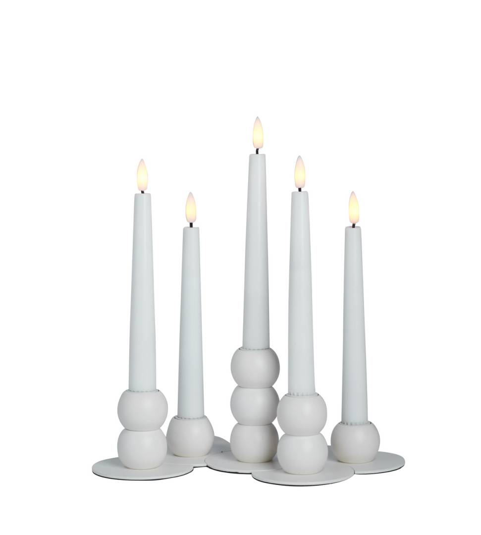 De vita metalljusstakarna med matt yta är vackra och passar i många interiörer och dukningar.