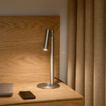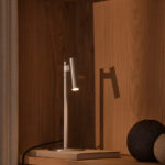 Makoto är en stilren och minimalistisk bordslampa designad av danska Nital Studio. Den minimalistiska, vertikala silhuetten har en finish i satinkrom – en varm, borstad kromfinish som tillför en subtil mjukhet till den industriella looken. Det justerbara lamphuvudet ger ett flexibelt och riktat ljus, vilket gör Makoto idealisk för läsning och arbete.