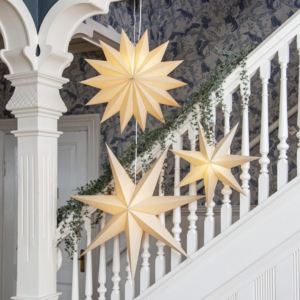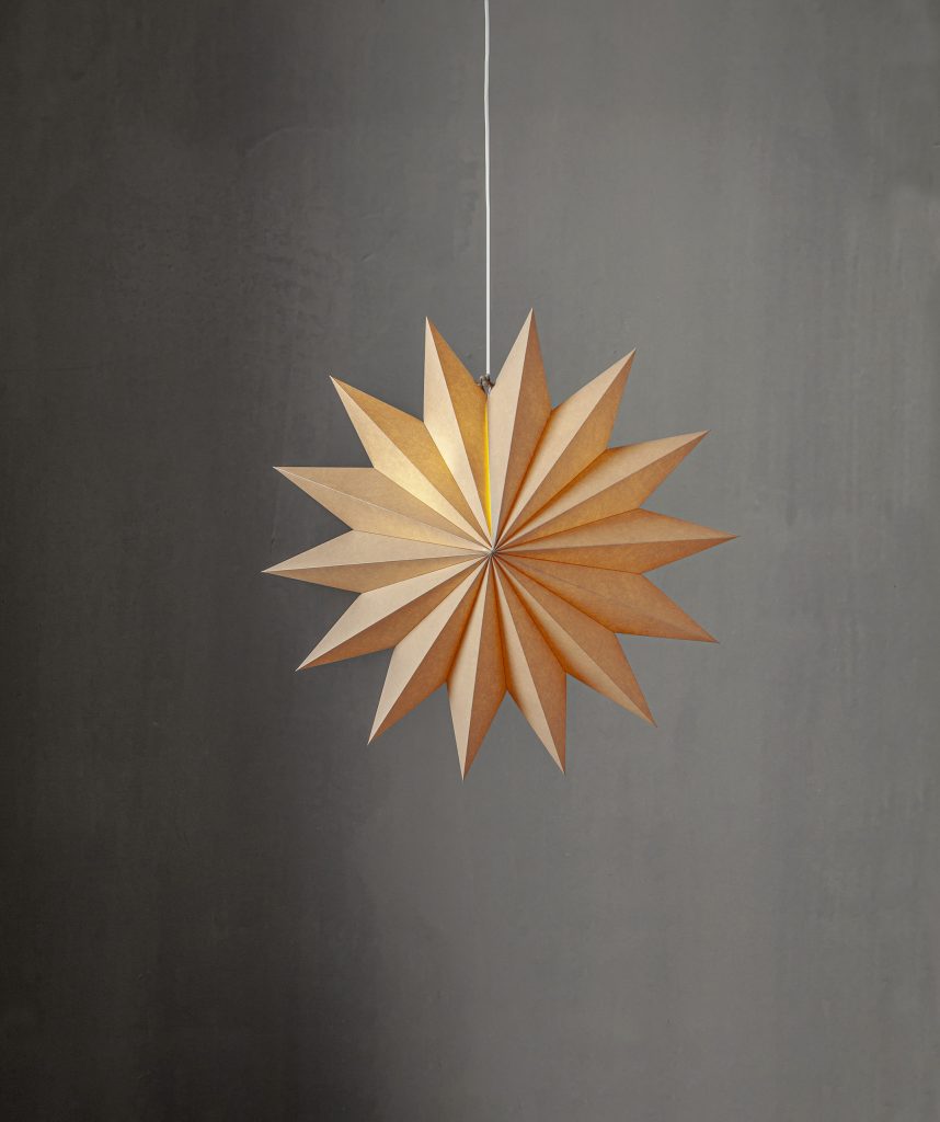 Beige adventsstjärna gjord av FSC papper. Ger ett silrent och modernt intryck, häng upp eller luta mot en vägg för att skapa den perfekta julstämningen.