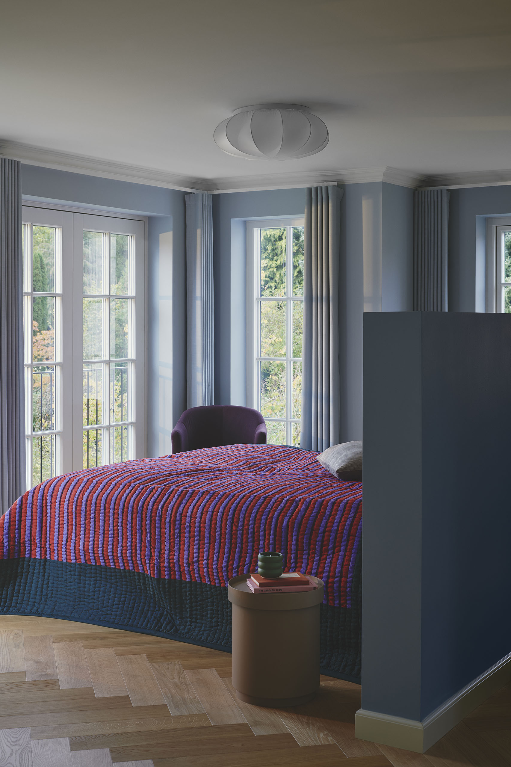 Aeron-plafondin kangasvarjostin siivilöi valon pehmeänä ja miellyttävä esimerkiksi makuuhuoneeseen. Helppo koota.