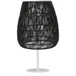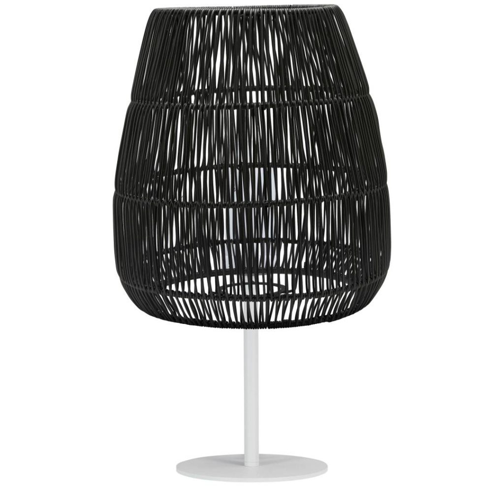 Tyylikäs pöytävalaisinjalka ulkokäyttöön. Valonlähdettä kosteudelta suojaava muovikupu.