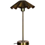 Anna kotiisi tyylikäs piristysruiske tällä metallisella pöytävalaisimella, jossa on huomiota herättävä poltetun messingin sävyinen viimeistely. Pinta hohtaa sinisen, vihreän ja kuparin sävyissä luoden eloisan, lähes hohtavan vaikutelman, joka tekee jokaisesta valaisimesta ainutlaatuisen. Sekä lampunjalka että varjostin on valmistettu metallista, mikä antaa lampulle yhtenäisen ja eksklusiivisen tunnelman. Pliseerattu metallivarjostin taittaa valoa jännittävällä tavalla ja lisää sekä muotoa että luonnetta. Ilmeikäs valaisin, joka näyttää yhtä hyvältä yöpöydällä kuin sivupöydällä tai ikkunassa.