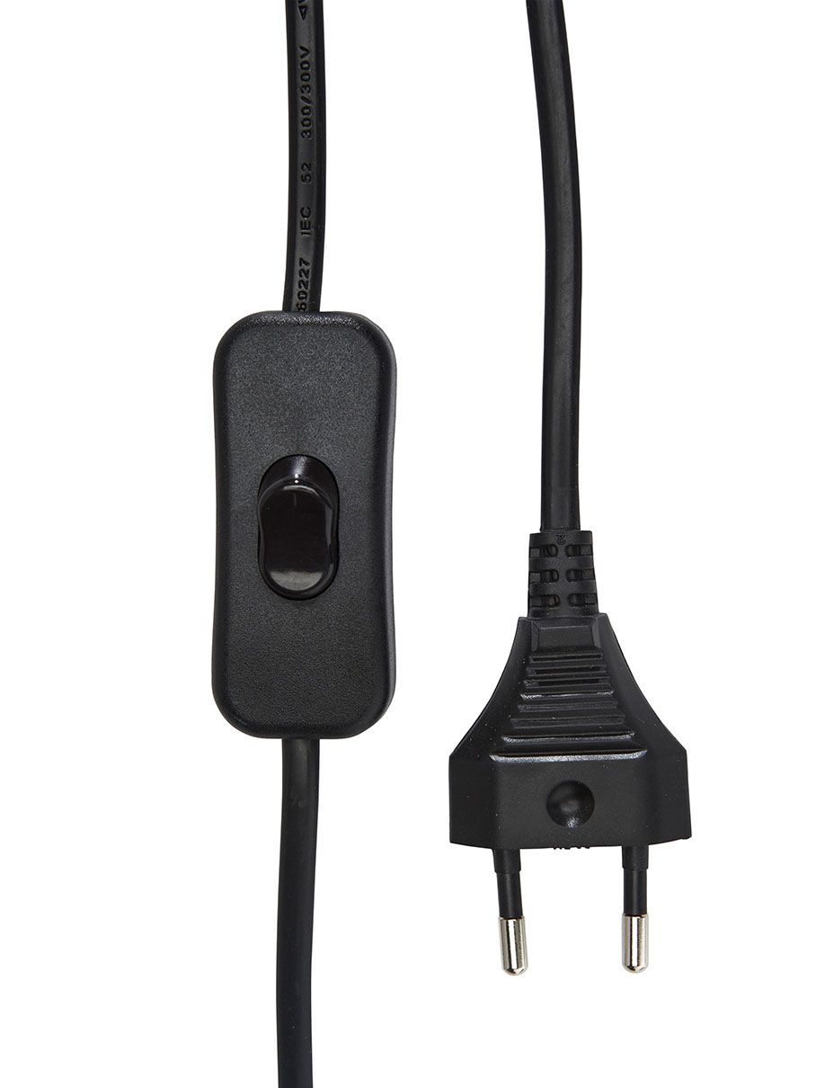 Valaisimessa on 160 cm pitkä musta johto katkaisijalla.