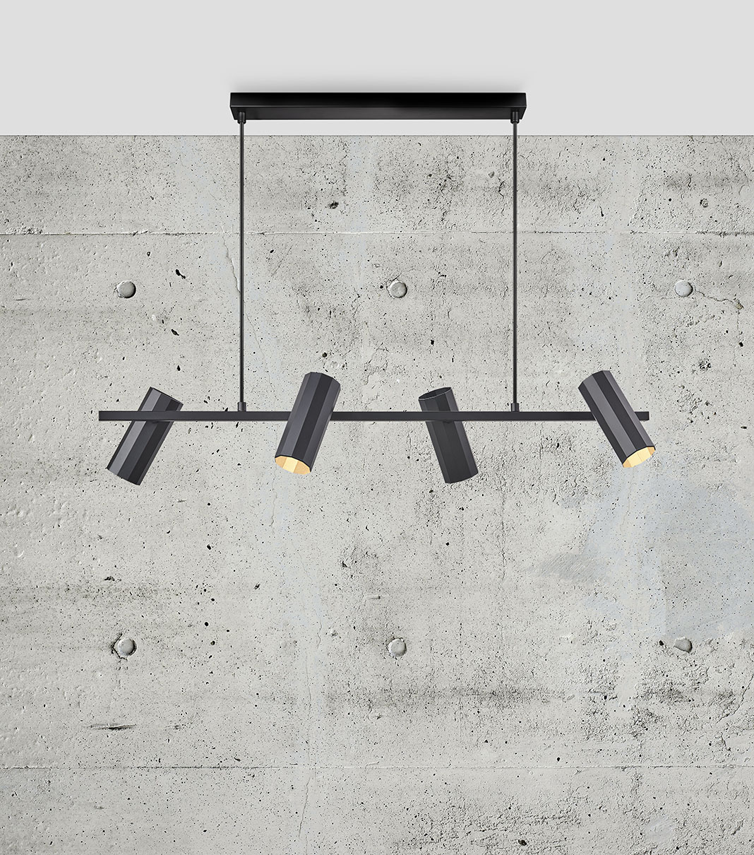 Minimalistinen 4-osainen riippuvalaisin metallia.
