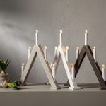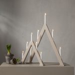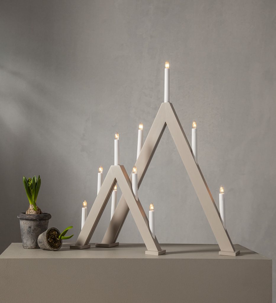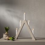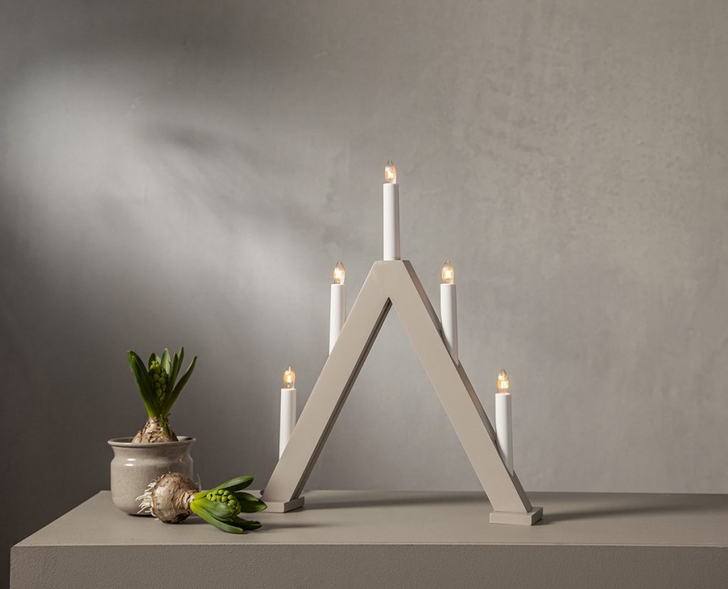Elegantti beigen väriseksi maalattu 5-haarainen puukynttelikkö. Sopii esimerkiksi ikkunalaudalle tuomaan kotiin ihanaa joulutunnelmaa.