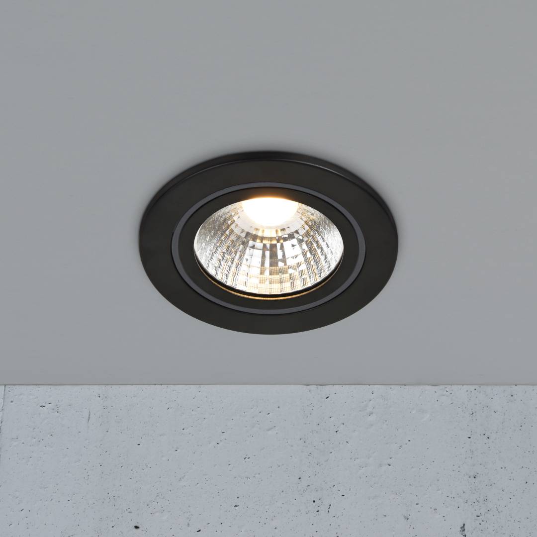 Alec-alasvalossa on kolmivaiheinen Moodmaker-himmennys, joka toimii tavallisella seinäkatkaisijalla. Himmennystoiminto antaa sinulle kolme erilaista vaihtoehtoa oikean valon asettamiseen: valoteho 100%, valoteho 50% tai vain ulompi valorengas, joka toimii täydellisesti yövalona. Sisäänrakennettu muistitoiminto muistaa viimeisimmän asetuksesi. Tämä alasvalo sopii kylpyhuoneisiin tai muihin kosteisiin tiloihin (IP44).