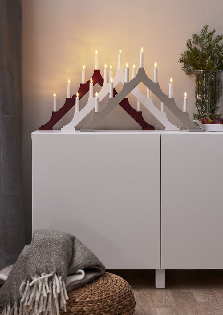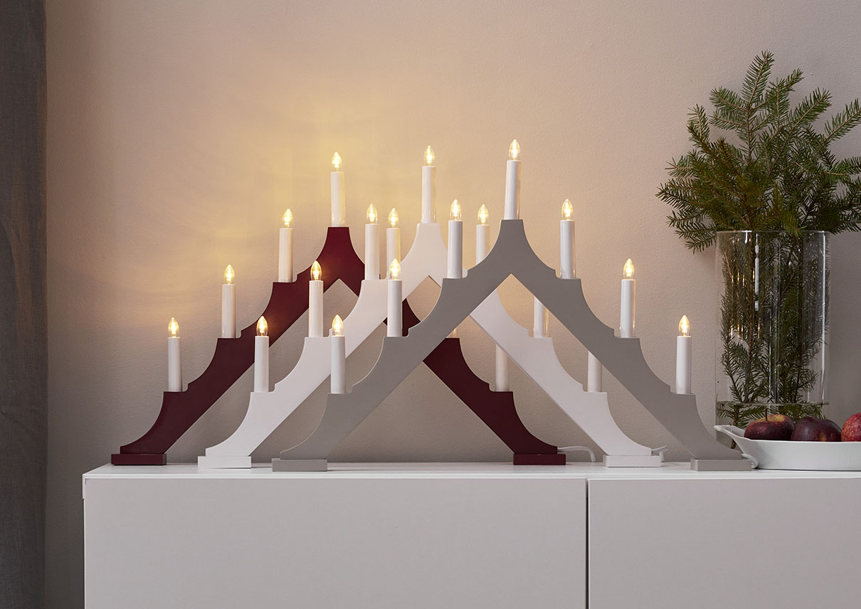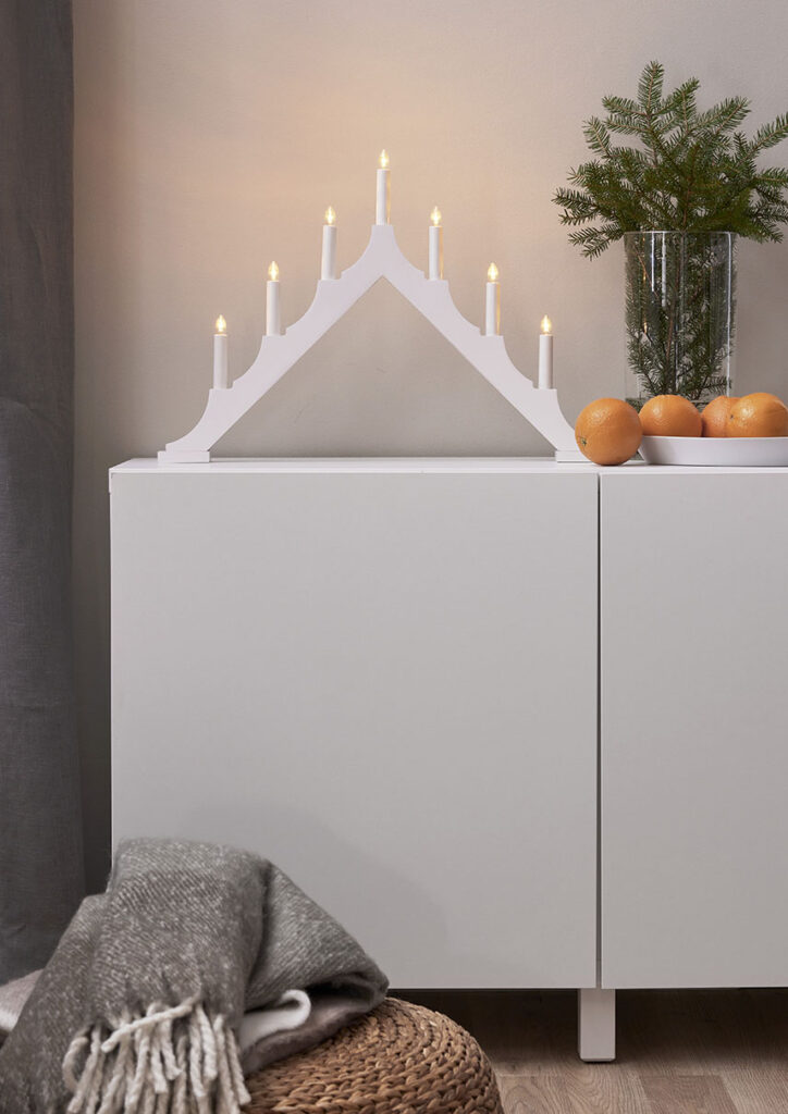 Klassisen mallinen puukynttelikkö modernilla silauksella. Sopii esimerkiksi ikkunalaudalle luomaan joulutunnelmaa.