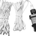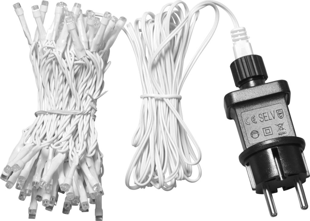 500 cm pitkä virtajohto. Valkoinen kaapeli.
