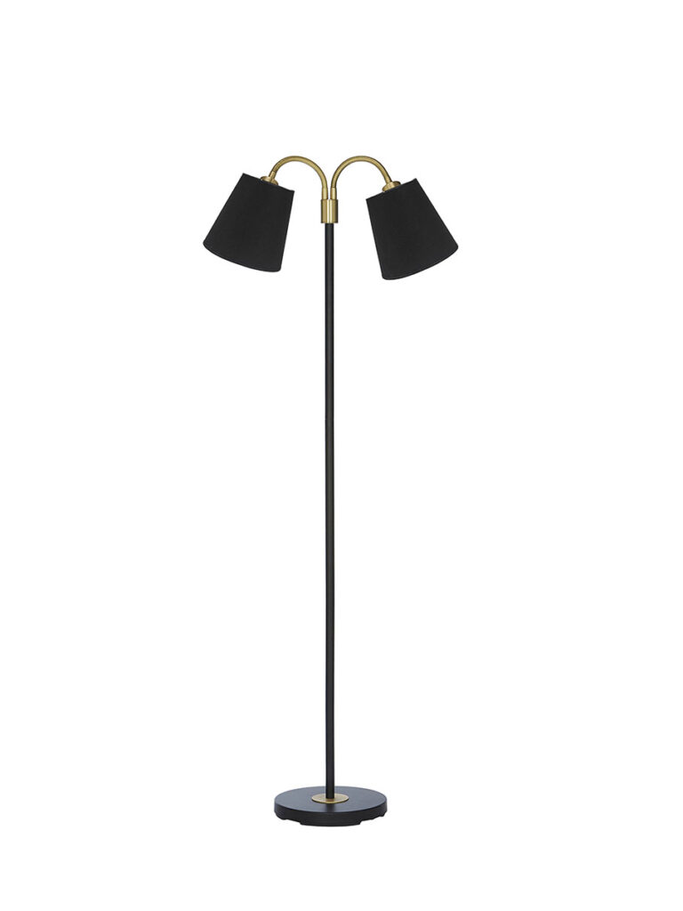 Lattiavalaisinpaketti, jossa on 150 cm korkea musta Amy Flex2 -lattiavalaisin ja kaksi mustaa Cia Franza -puuvillavarjostinta.