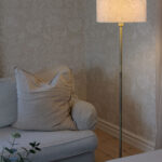 Lattiavalaisinpaketti, jossa on 130 cm korkea jalka ja Sara Acanthus-lampunvarjostin rauhallisessa, elegantissa beigen värissä. Varjostin on luotu PR Homen ja Boråstapeterin yhteistyönä. Acanthus -kangas on 100% kierrätettyä polyesteria, kuvio on digitaalisesti painettu, ja värit tulevat kuosista kauniisti esiin. Kangas on painettu Boråsissa, Ruotsissa.