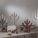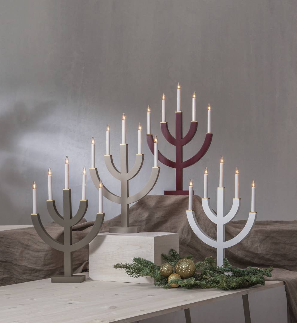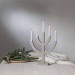 Moderni, mutta samalla perinteinen puukynttelikkö kullanvärisiksi maalatuilla puisilla koristeilla. Kynttelikkö sopii täydellisesti ikkunalaudalle tai lipaston päälle.