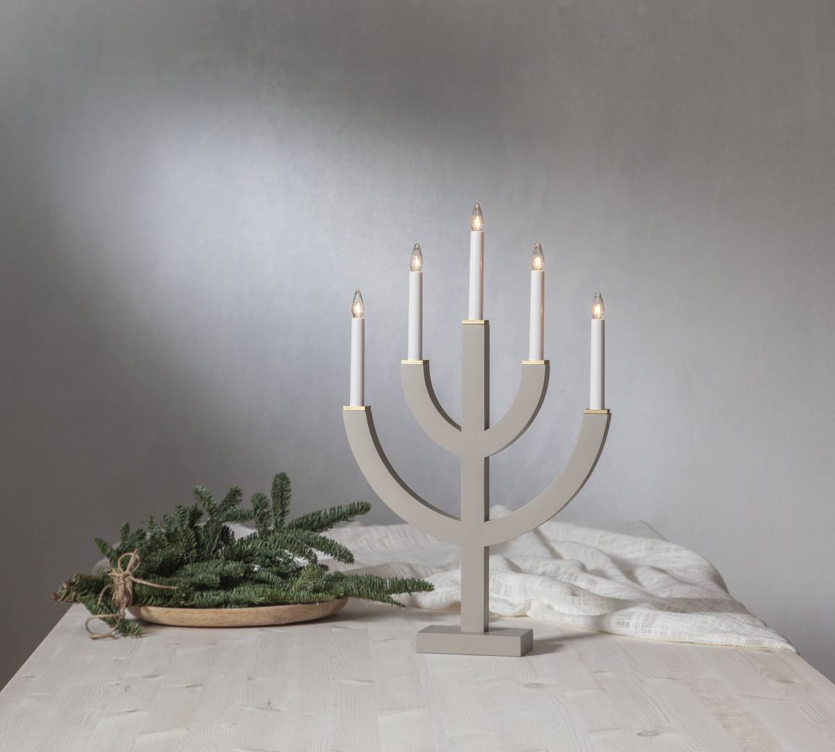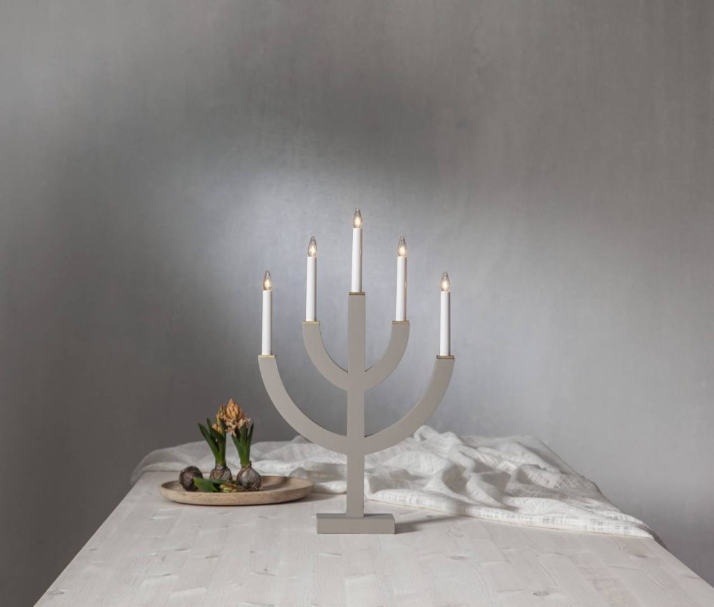 Kynttelikössä on 5 vaihdettavaa lamppua ja 180 cm pitkä johto katkaisijalla.