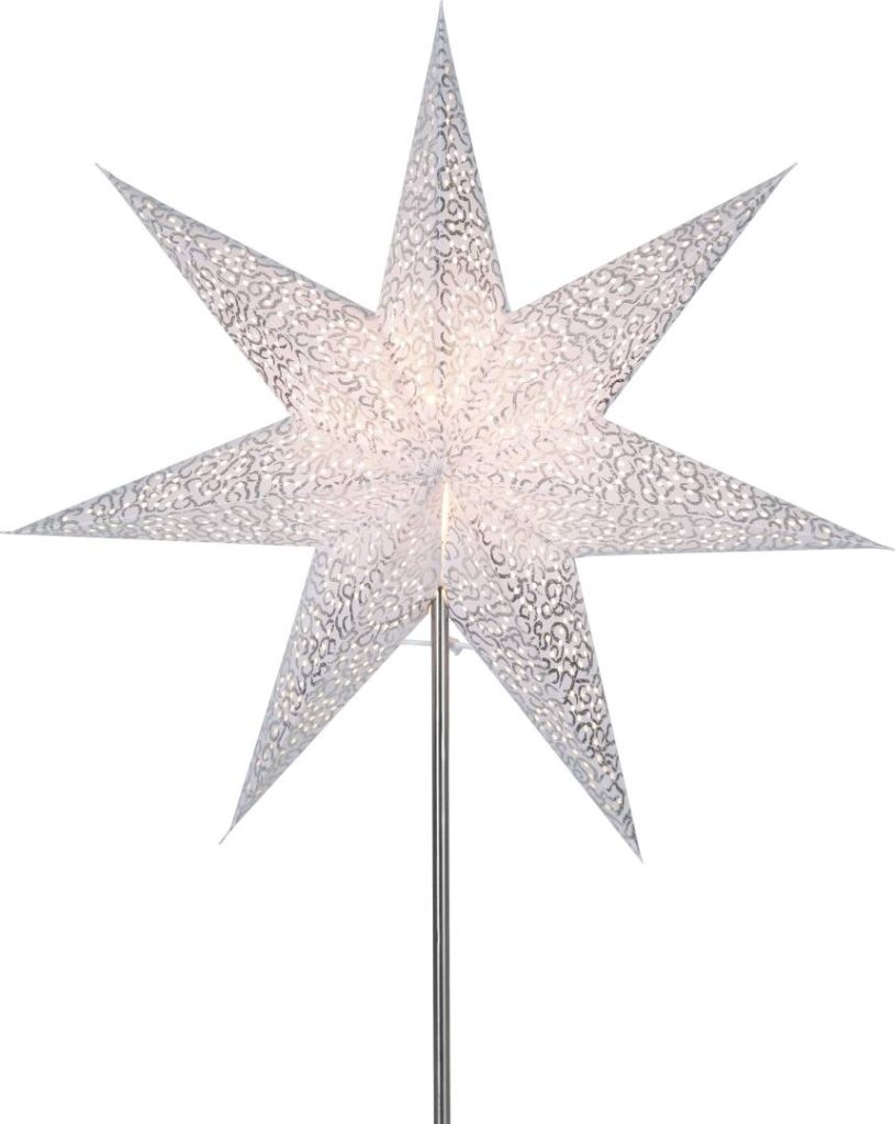Elegantti kauniisti kuvioitu paperitähti, jonka voi ripustaa esimerkiksi ikkunaan tuomaan joulutunnelmaa. Sisäkäyttöön.