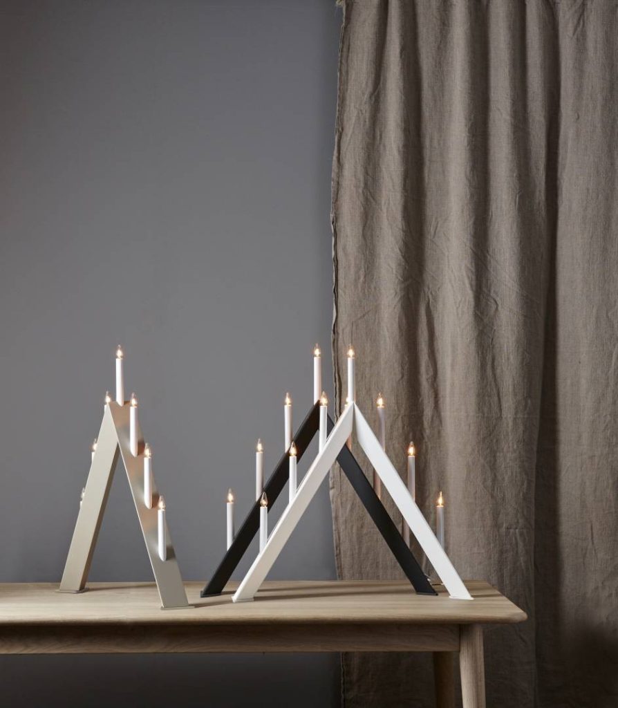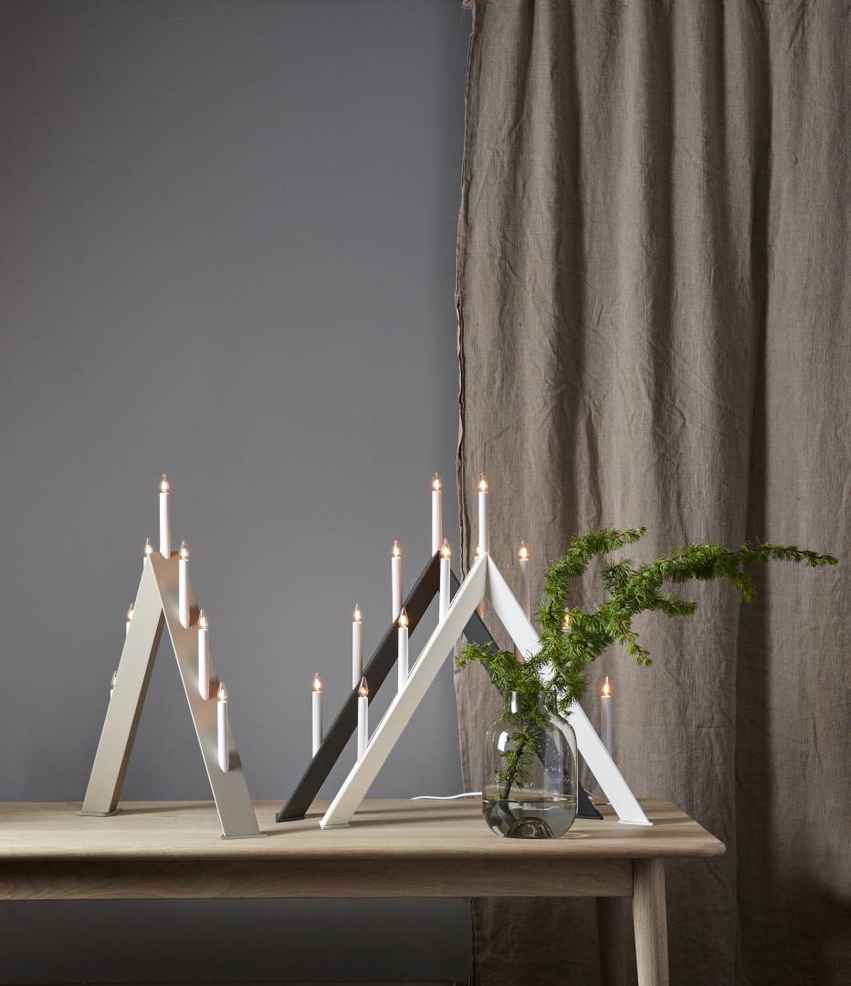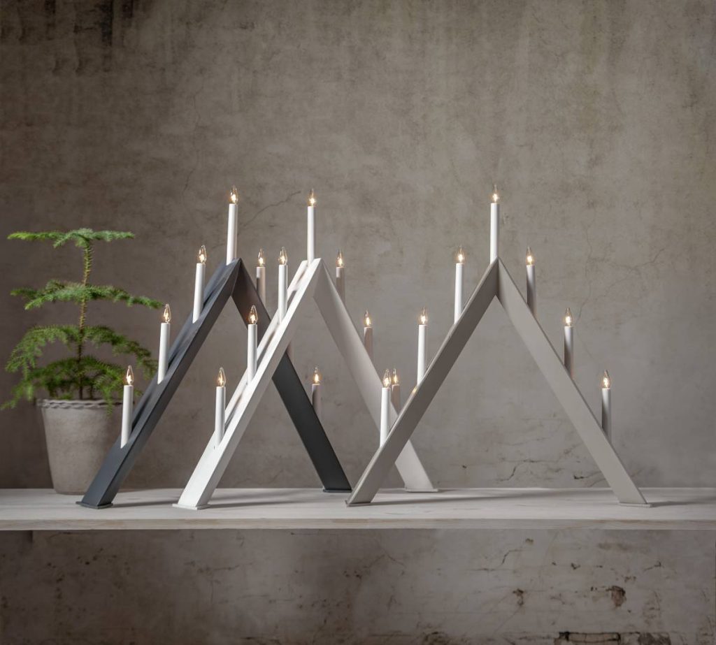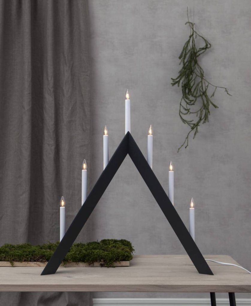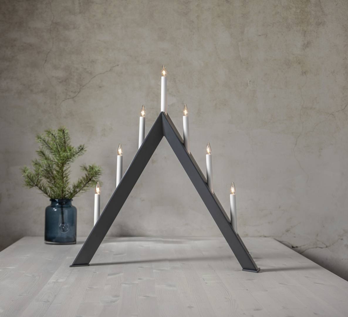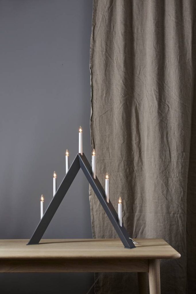 Grafiitinharmaa moderni puukynttelikkö kulmikkailla muodoilla. Luo ihanan jouluisen tunnelman niin kotiin kuin julkisiin tiloihinkin.