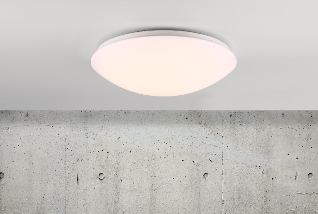 Klassinen kattoplafondi huurretulla varjostimella. Sopii erinomaisesti esimerkiksi kodinhoitohuoneeseen, kellariin tai käytävälle. Sisältää LED-valonlähteen, jolla on pieni energiankulutus ja pitkä käyttöikä. Valaisimessa on sisäänrakennettu liikesensori, ja se syttyy ja sammuu automaattisesti. Värilämpötila 3000K, valovirta 1450 lm.