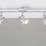 Kattoon tai seinään asennettava kolmiosainen spottivalaisin metallia.