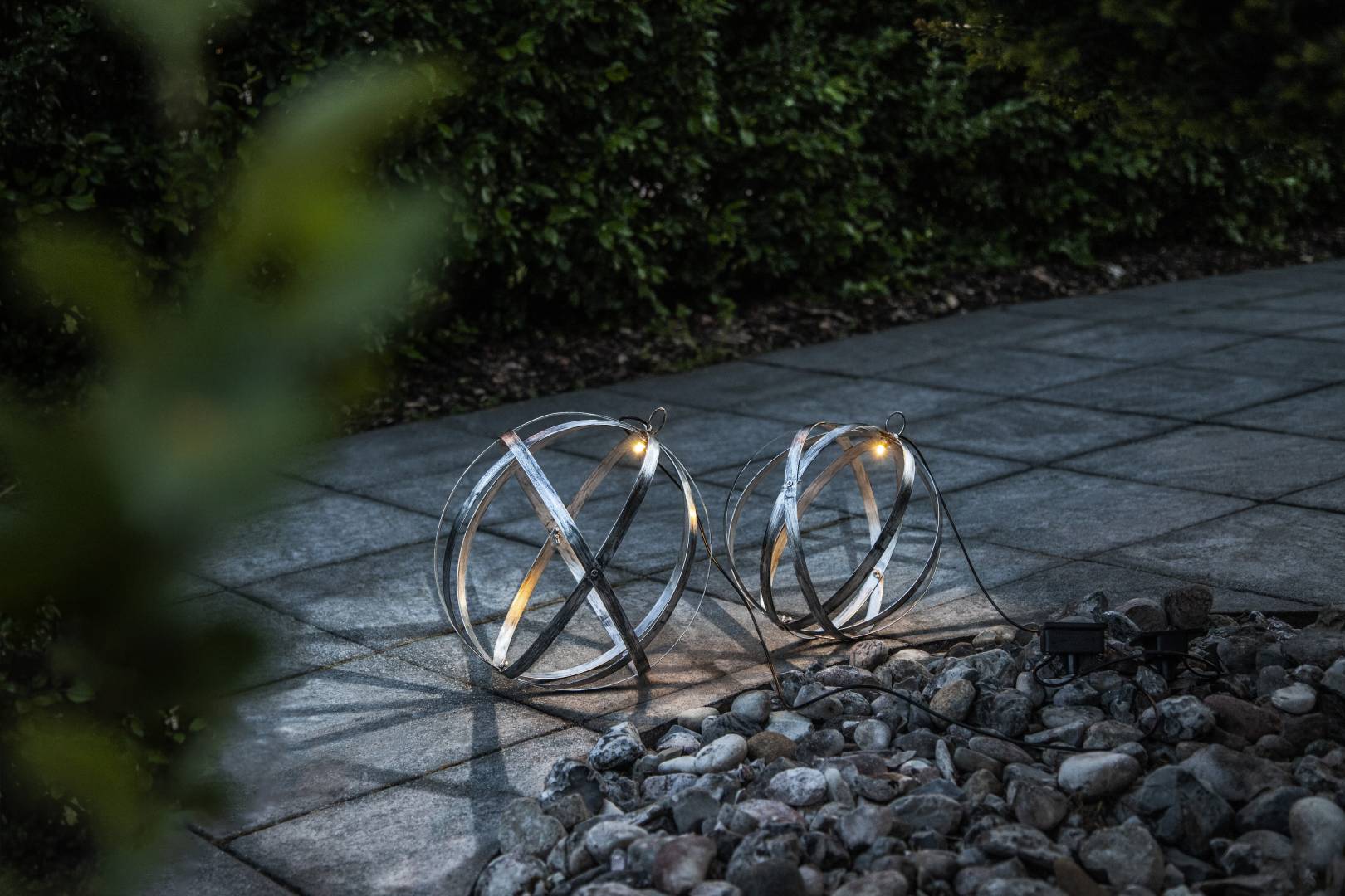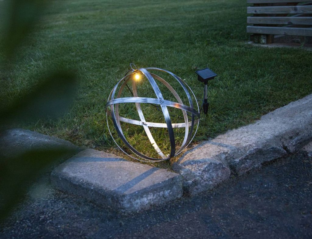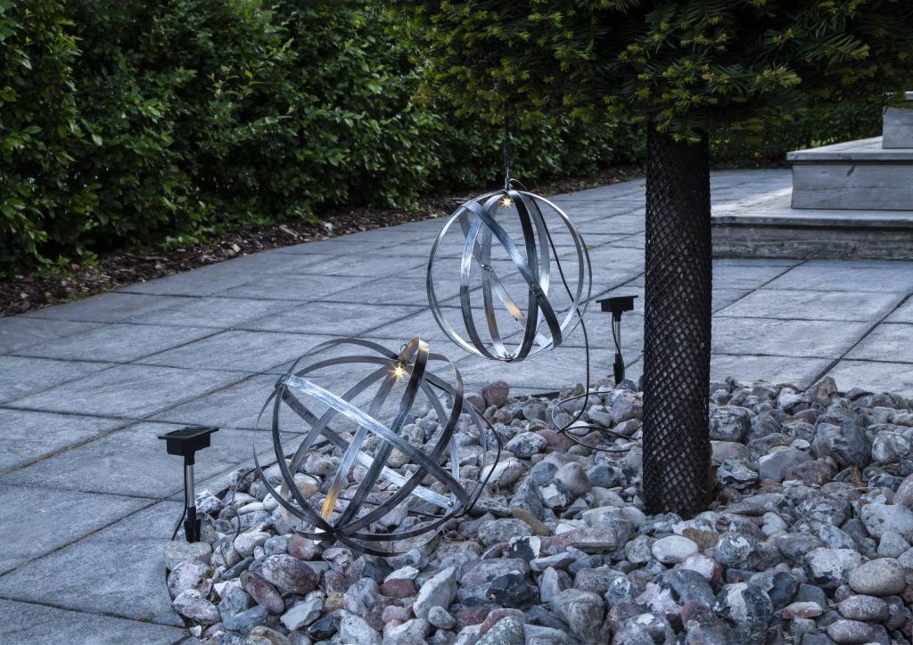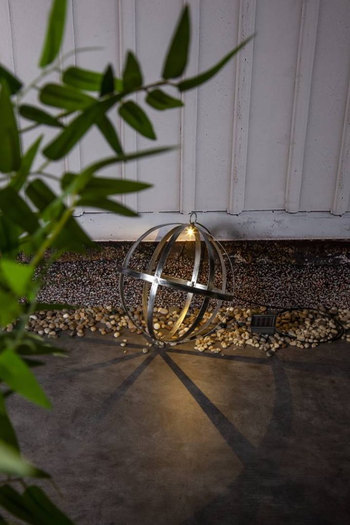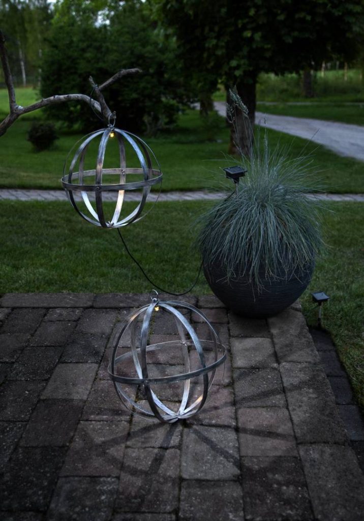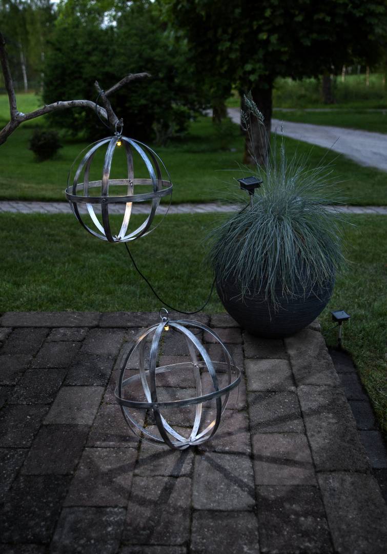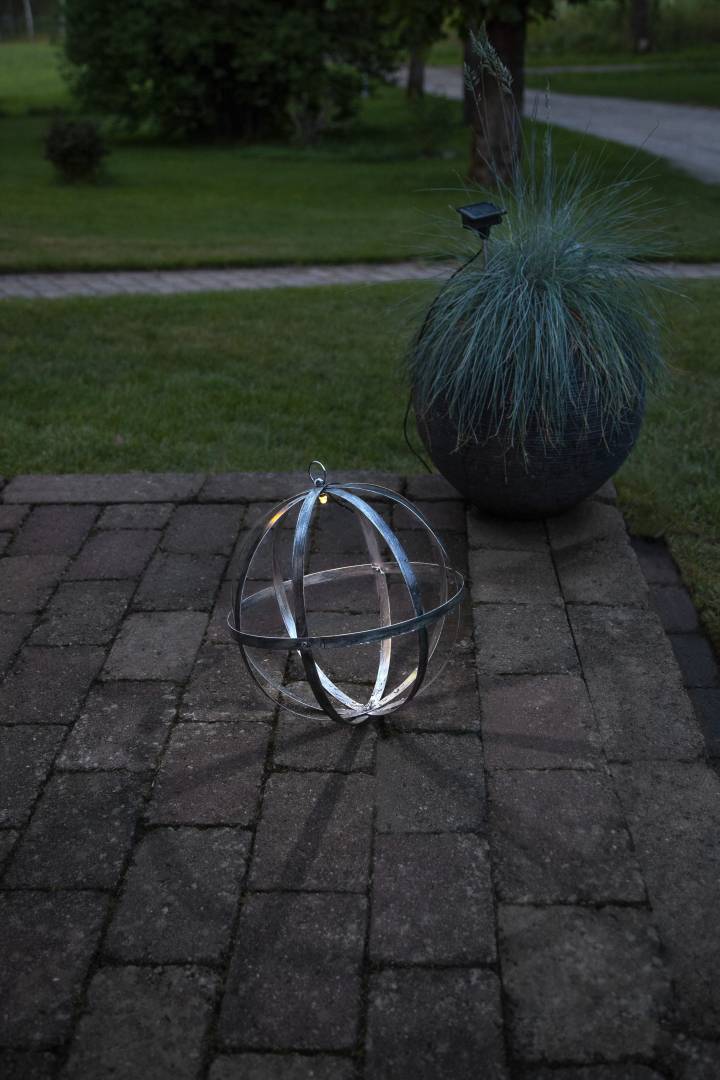 Aurinkokennolla toimiva antiikkihopean värinen koristevalaisin, joka valaisee lämpimän valkoisella valolla luoden samalla kauniita varjoja. Helppo kiinnittää ripustamalla esimerkiksi puutarhaan tai terassille. Pakkauksessa mukana myös U-muotoinen maakiinnike.