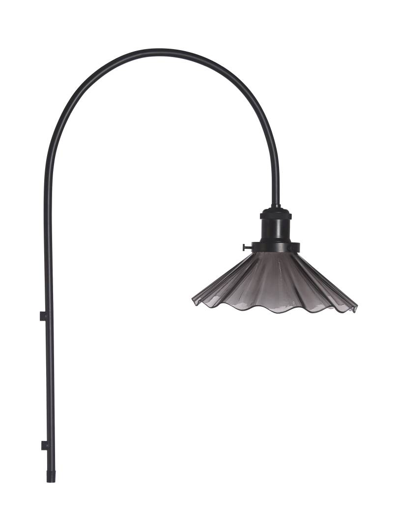 August-seinävalaisimessa on kaareva musta metallirunko ja musta vekattu lasivarjostin.