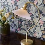 Opaalivalkoinen lasivarjostin heijastaa valon kauniisti. Varjostin kiinnittyy runkoon kolmella ruuvilla.