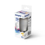 LED-lamppu valkoisella lasilla. B22-bajonettikanta, värilämpötila 2700K, valovirta 1055 lm. Vastaa 75W hehkulamppua.