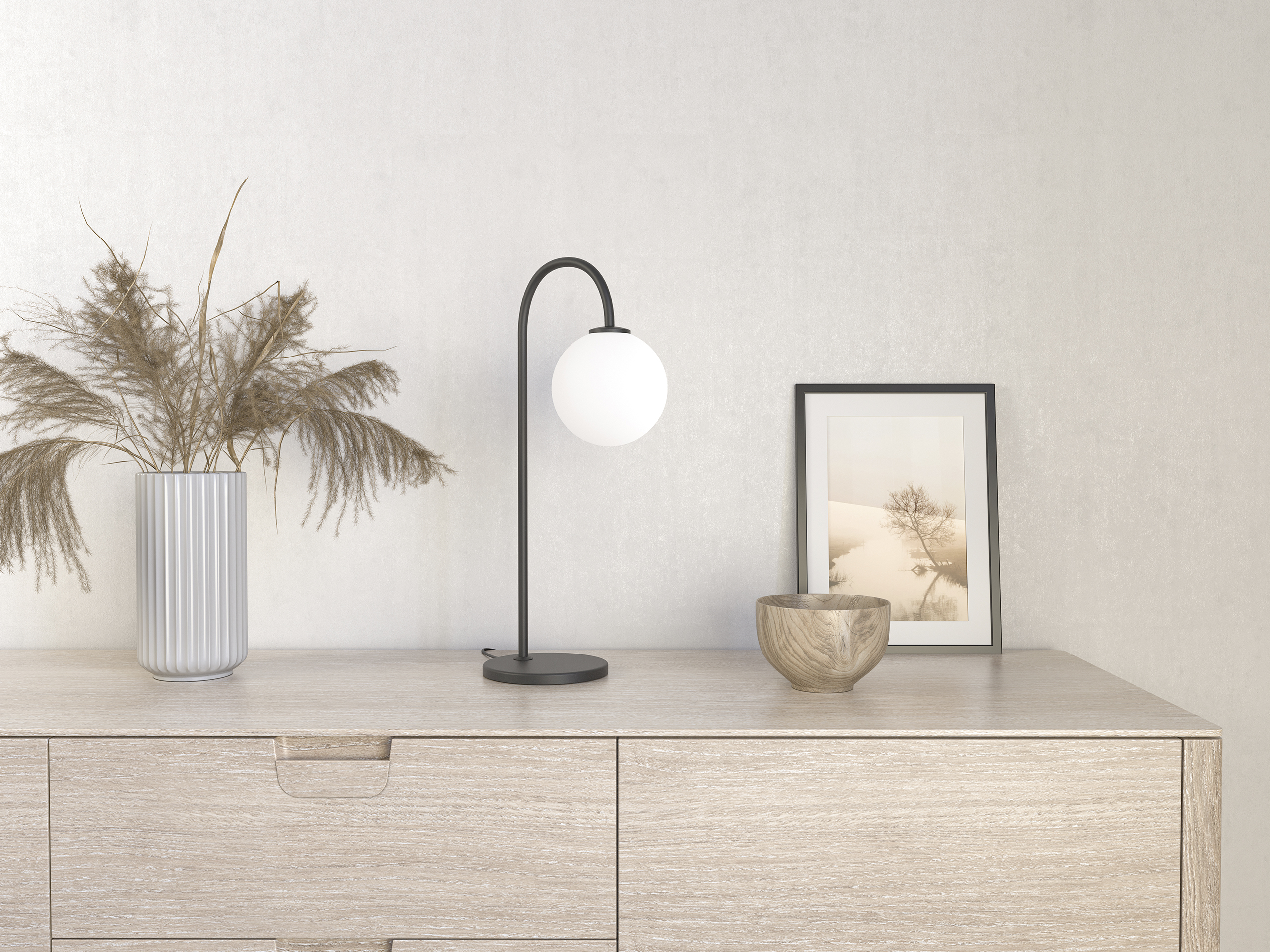 Opaalivalkoinen lasikupu luo pehmeää valoa.