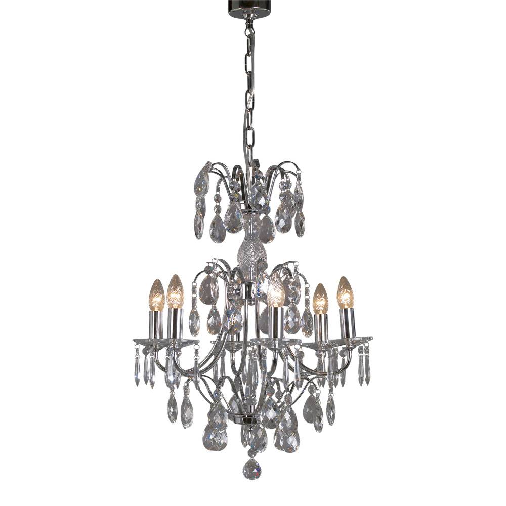 Kaunis ja näyttävä kromin värinen kristallikruunu K9-kristalleilla.