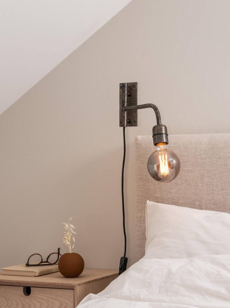 Tyylikäs, pelkistetty seinävalaisin kääntyvällä varrella. Valaisimessa on metallinen varjostinrengas, joten siihen on helppo yhdistää joko pelkkä kivannäköinen valonlähde tai toppring-kiinnityksellä oleva lampunvarjostin.