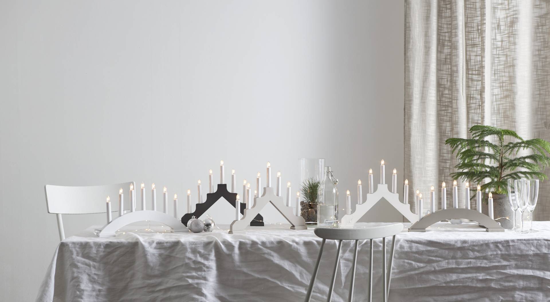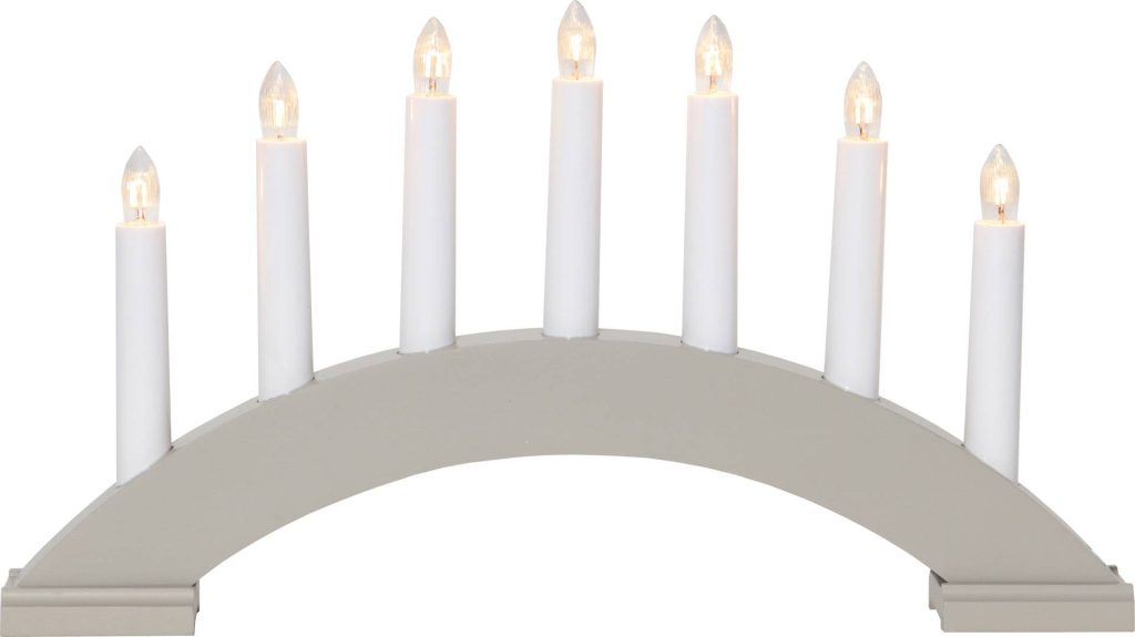 Beigen sävyinen kaarimallinen 7-haarainen puukynttelikkö sisäkäyttöön. Pelkistetty kynttelikkö, joka tuo kotiin ihanan tunnemallisen jouluvalaistuksen.
