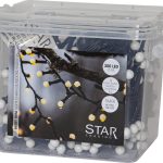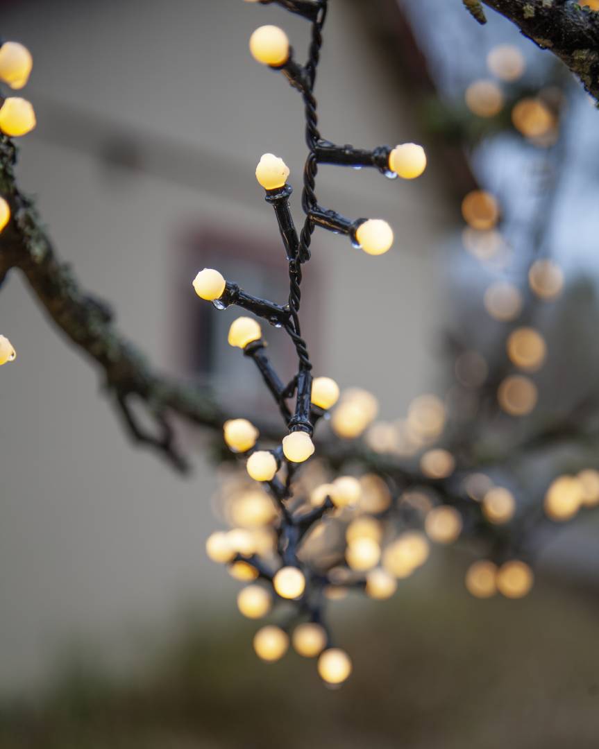 Ulkokäyttöön sopiva 6 metriä pitkä valosarja 300 pienellä pyöreällä lampuilla, joissa on lämpimän valkoinen valo. Sopii esimerkiksi puutarhan, parvekkeen tai terassin koristeluun.