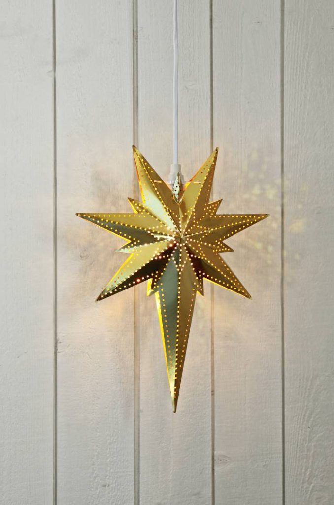 Kaunis messingin värinen metallitähti sisäkäyttöön. Tähdessä on hienoja yksityiskohtia ja paikka valonlähteelle. Kaunis adventtitähti, joka luo jouluista tunnelmaa kotiisi. Valmistettu Ruotsissa.