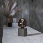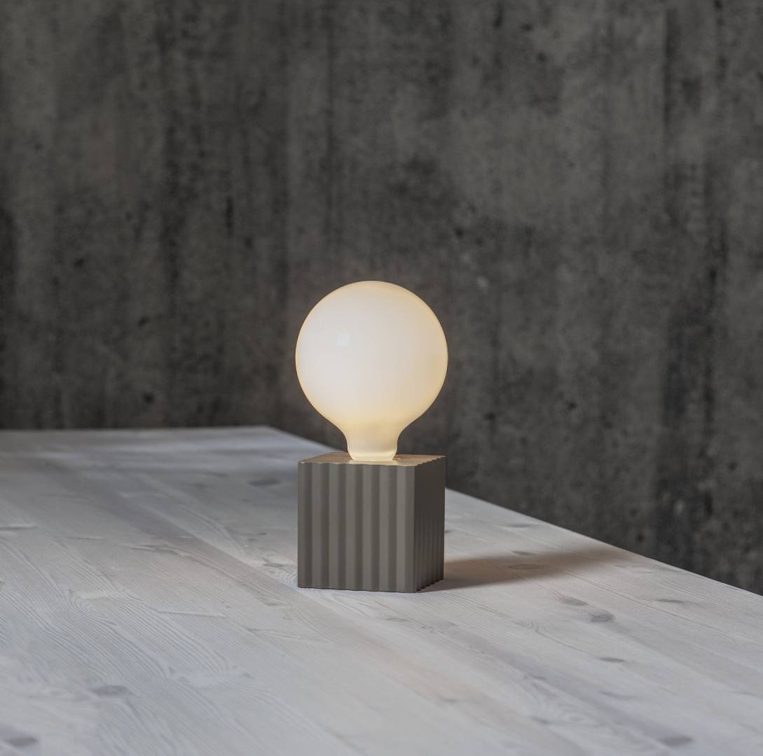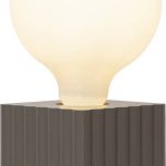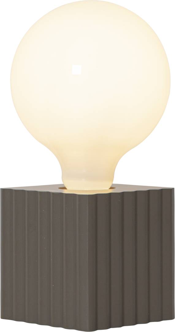 Ruskea puinen pöytävalaisin uurretulla kuvioinnilla ja E27-lamppukannalla. Saat elegantin valaisimen, kun yhdistät tähän lampunjalkaan kivan näköisen valonlähteen. Sopii esimerkiksi pöydälle tai ikkunalaudalle.