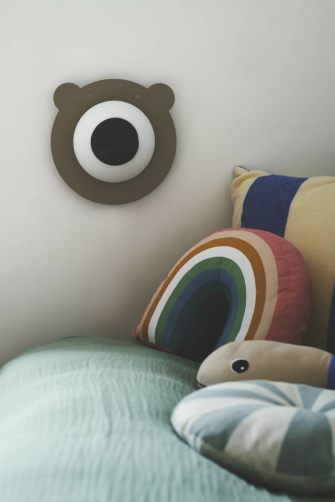 Bruna Bear on ihana, koristeellinen seinävalaisin lastenhuoneeseen. Karhulla on opaalivalkoinen nenä, joka päästää lävitseen pehmeää ja häikäisemätöntä valoa. Sopii täydellisesti esimerkiksi iltasatuhetkiin valaistukseksi.