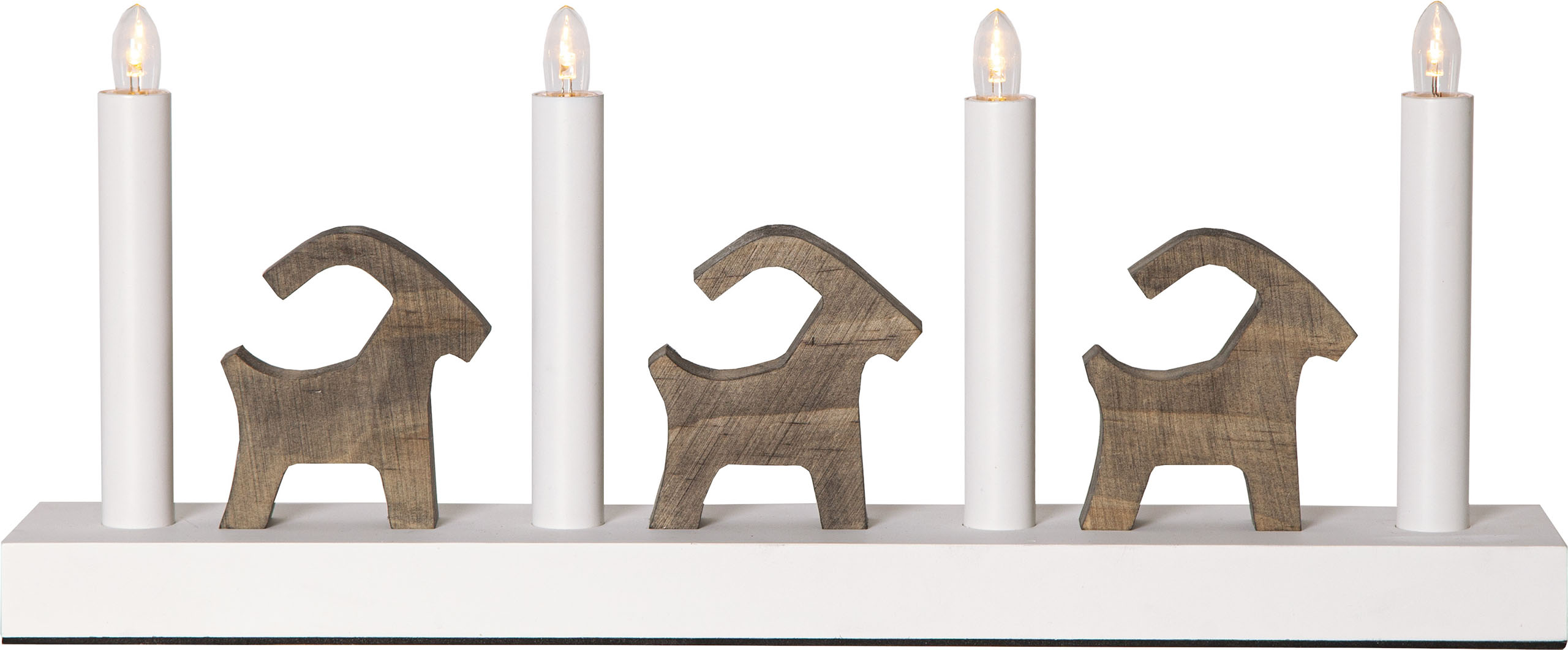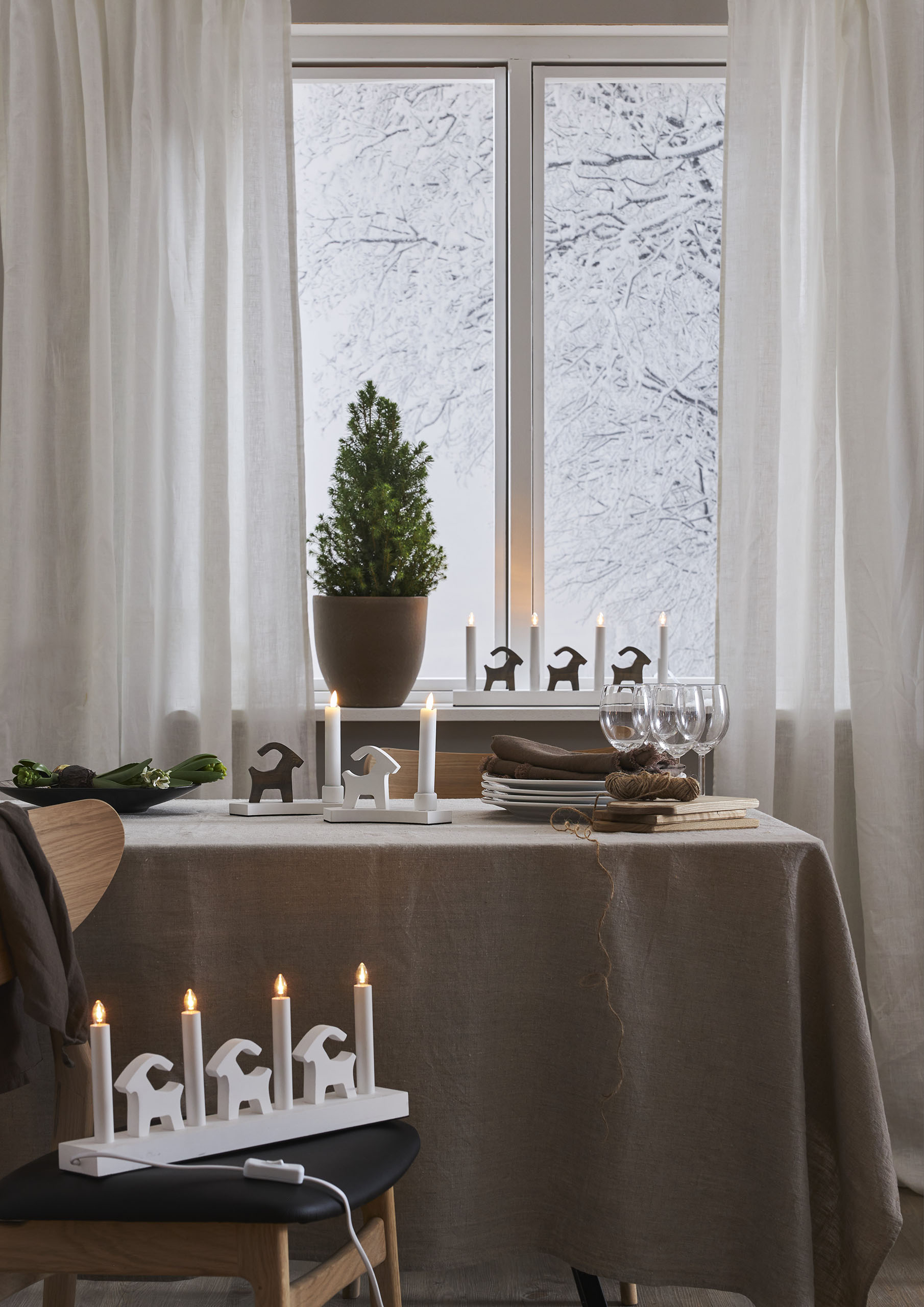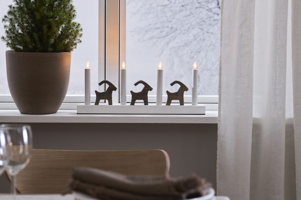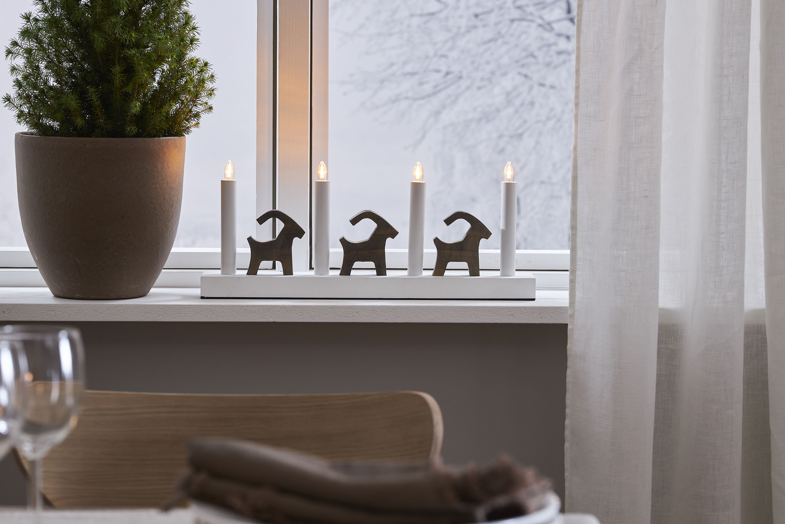 Bruse-kynttelikössä on puujalusta ja metalliset kynttilät ja koristeena puupukit. LED-lamput luovat lämmintä valoa ja jouluista tunnelmaa. Bruse-sarjasta löytyy myös kynttilänjalka.