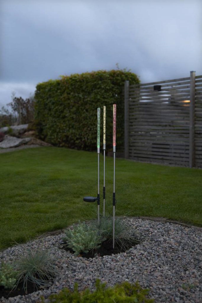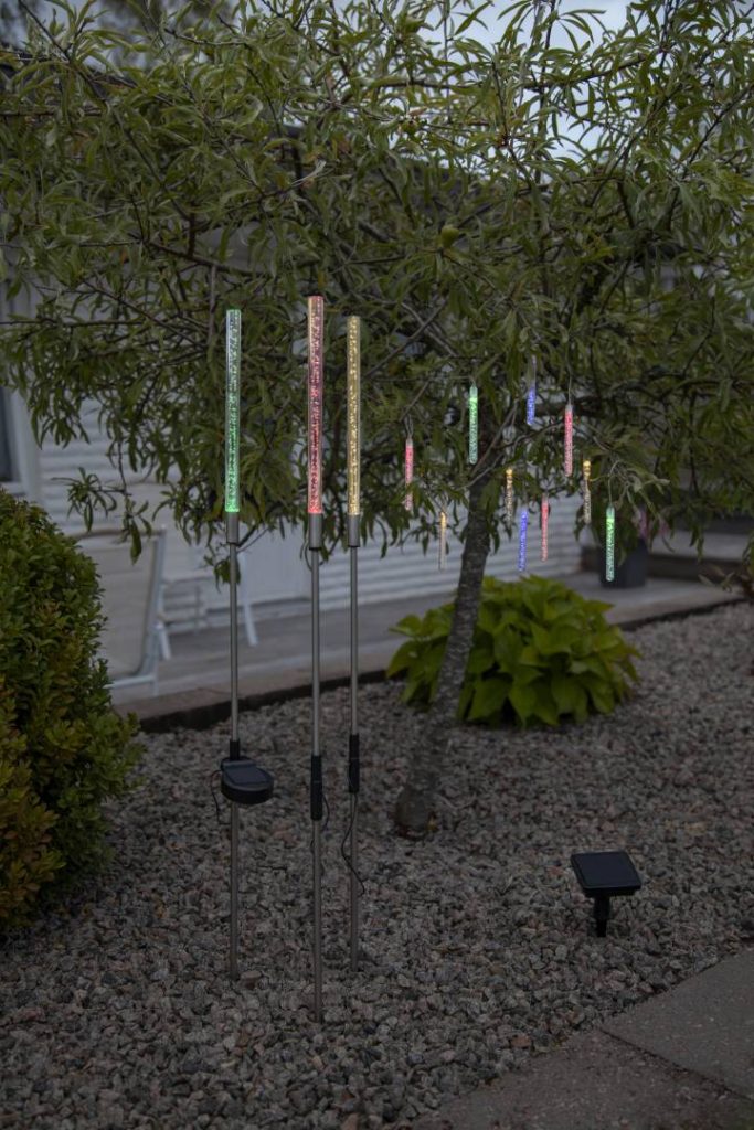 Aurinkokennolla toimiva kolmeosainen koristevalaisin, jossa on 3 noin 80 cm korkeaa ja 1 cm halkaisijaltaan olevaa puikkoa, jotka loistavat hämärässä keltaisella, vihreällä ja punaisella valolla. Ensimmäisen ja toisen puikon välissä oleva johto on 90 cm pitkä, ja toisen ja kolmannen välillä 70 cm pituinen. Bubbly-koristevalaisin sopii esimerkiksi terassille, parvekkeelle tai puutarhaan.