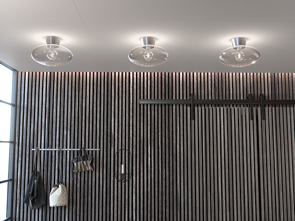 Bullo on tyylikäs plafondi, joka sopii moneen eri tilaan, myös kylpyhuoneeseen.