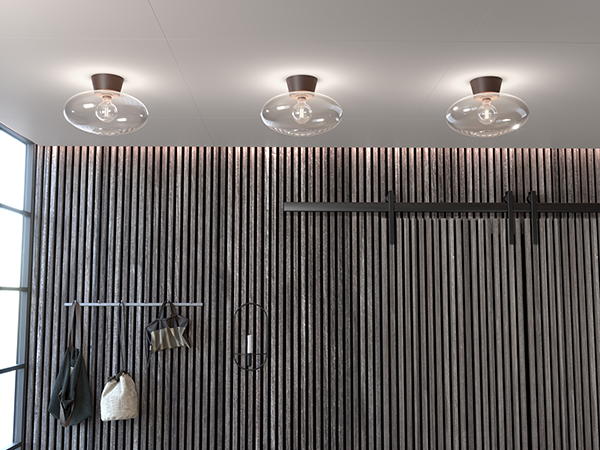 Bullo on tyylikäs plafondi, joka sopii moneen eri tilaan, myös kylpyhuoneeseen.