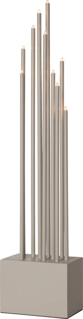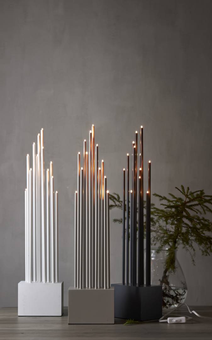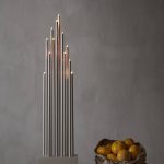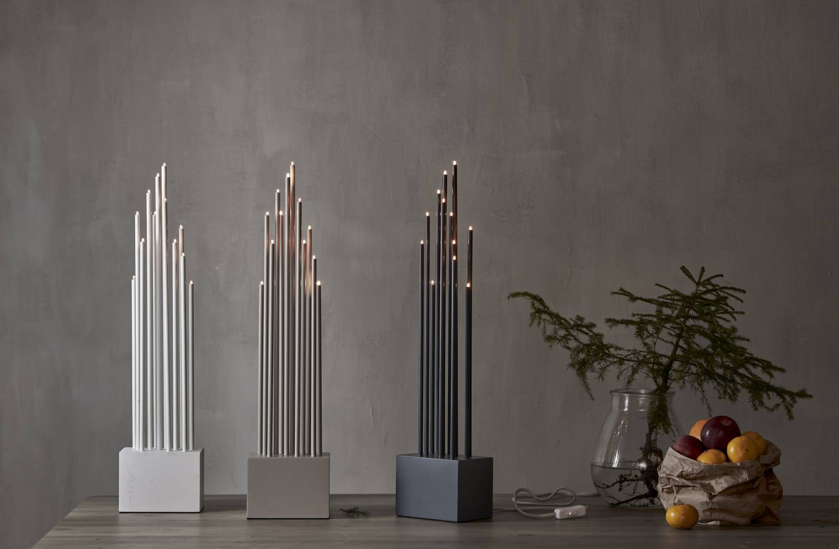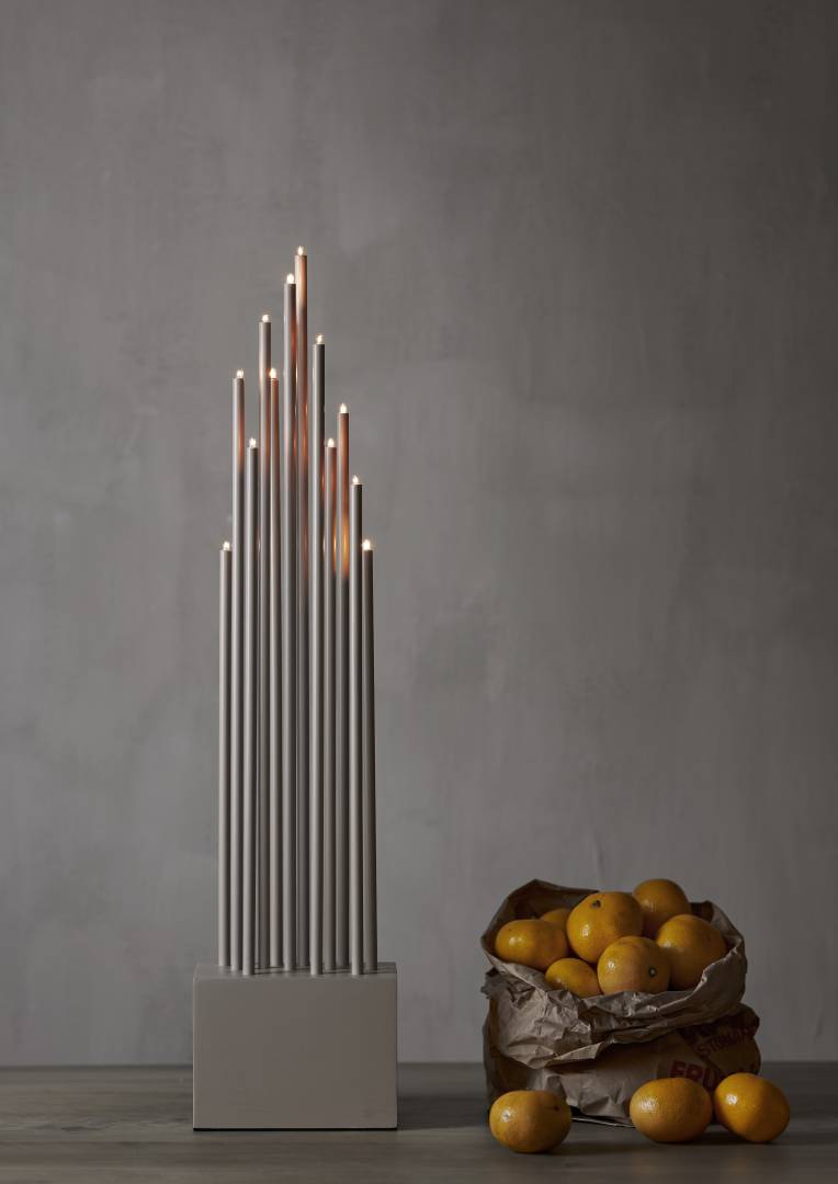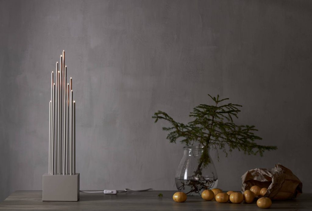 Tyylikäs kynttelikkö, jonka jalusta on puuta ja kynttilät metallia. Sopii ympärivuotiseen käyttöön. Pienikokoisen jalustan ansiosta sopii hyvin esimerkiksi kapealle ikkunalaudalle.