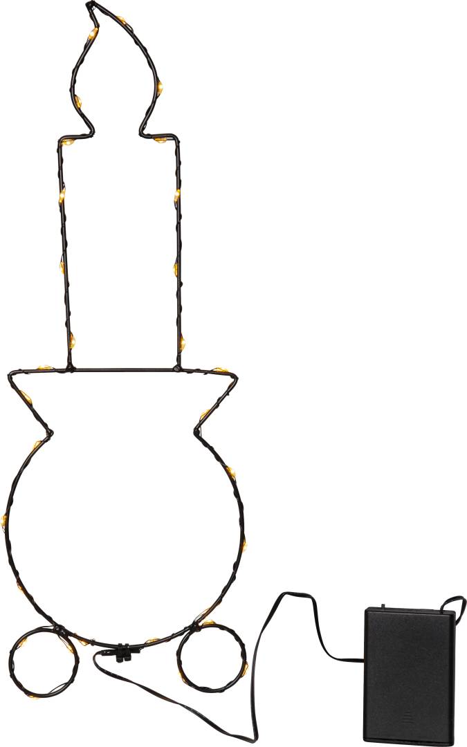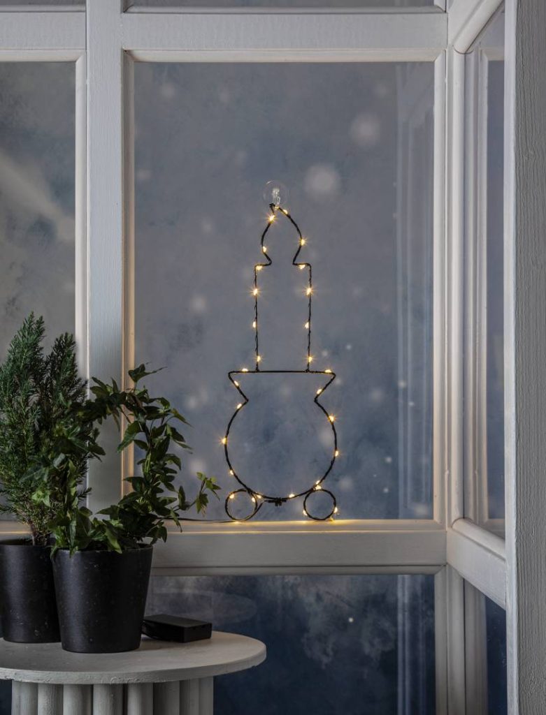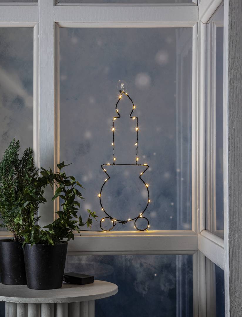 Ikkunaan tai muulle sileälle, puhtaalle pinnalle kiinnitettävä kynttiläsiluetti. Koristeessa loistaa 30 lämpimän valkoista Dew Drop LED-valoa. Mukana imukuppi kiinnittämistä varten.