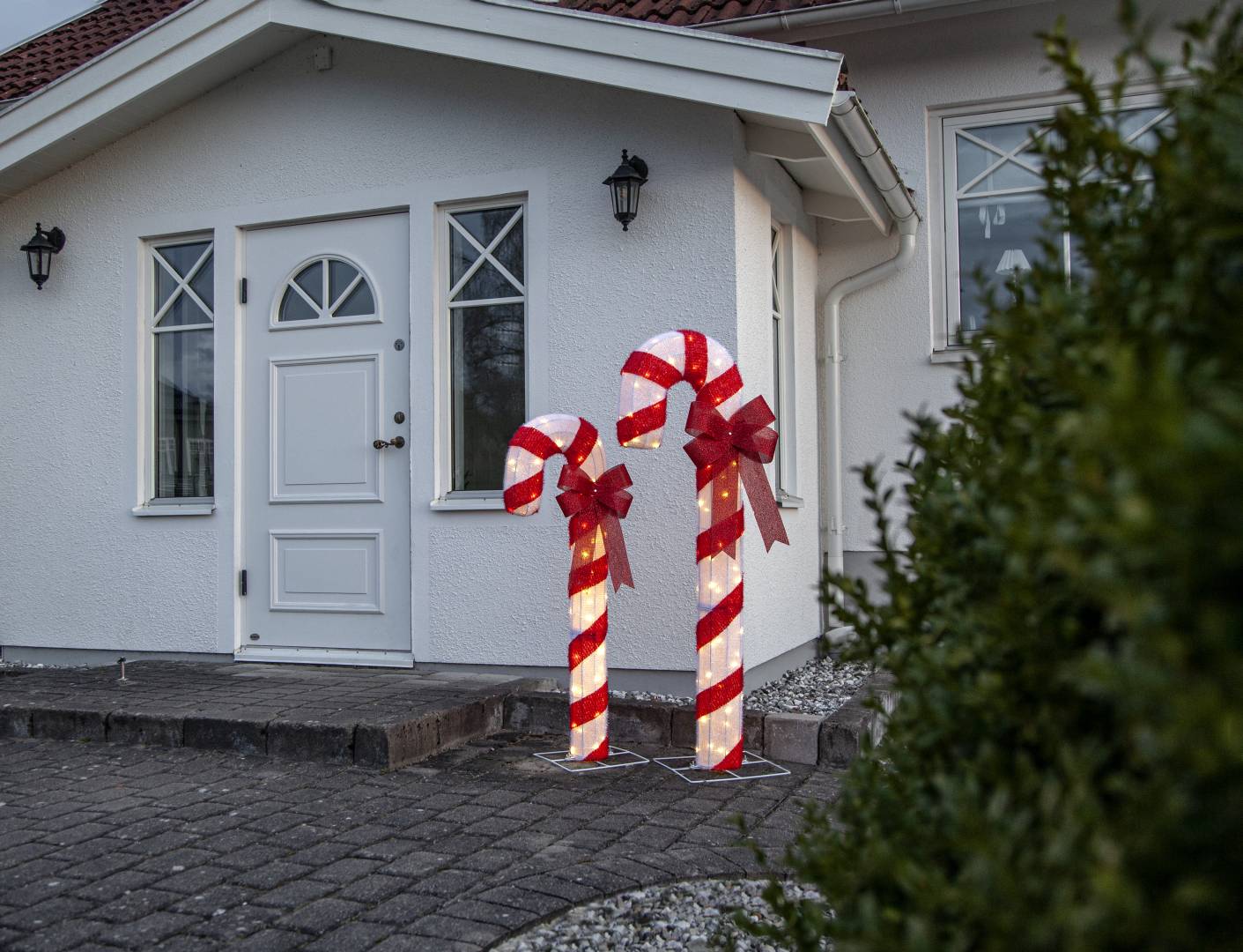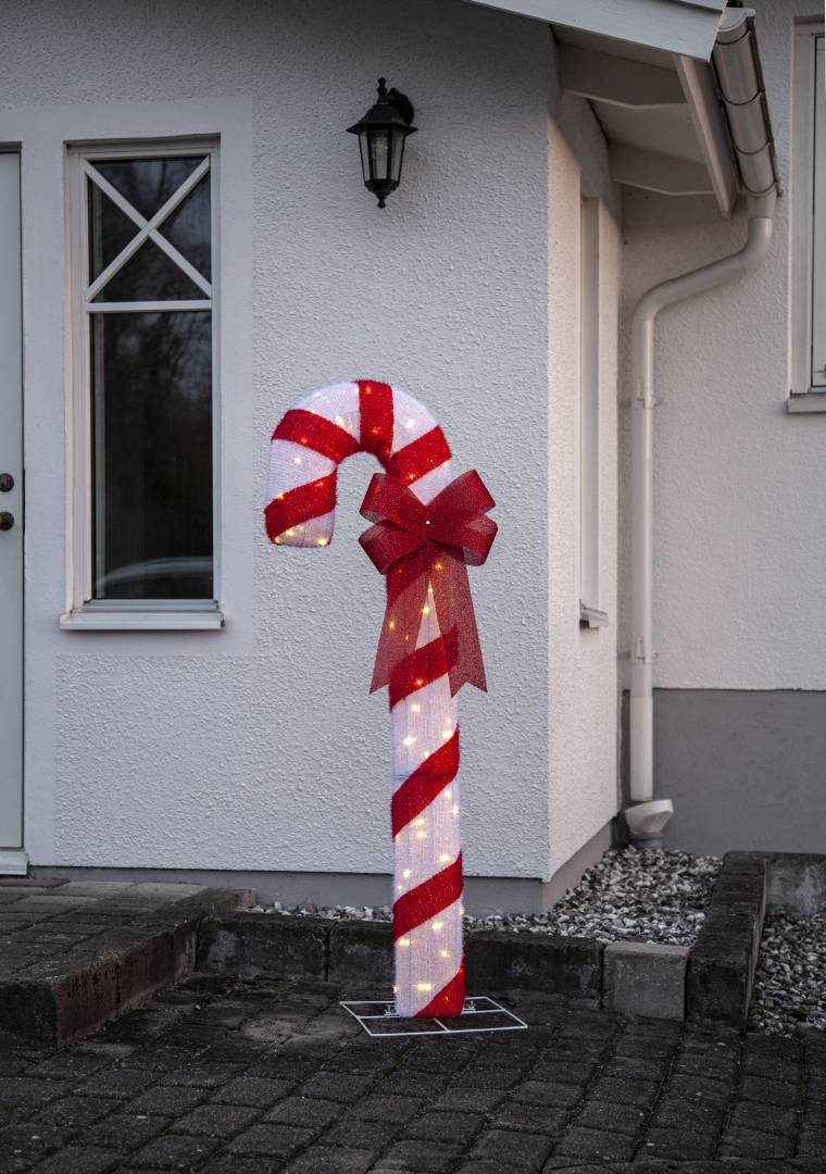 Ulkokäyttöön katettuun tilaan sopiva jouluinen koriste lämpimän valkoisilla LED-valoilla.