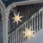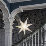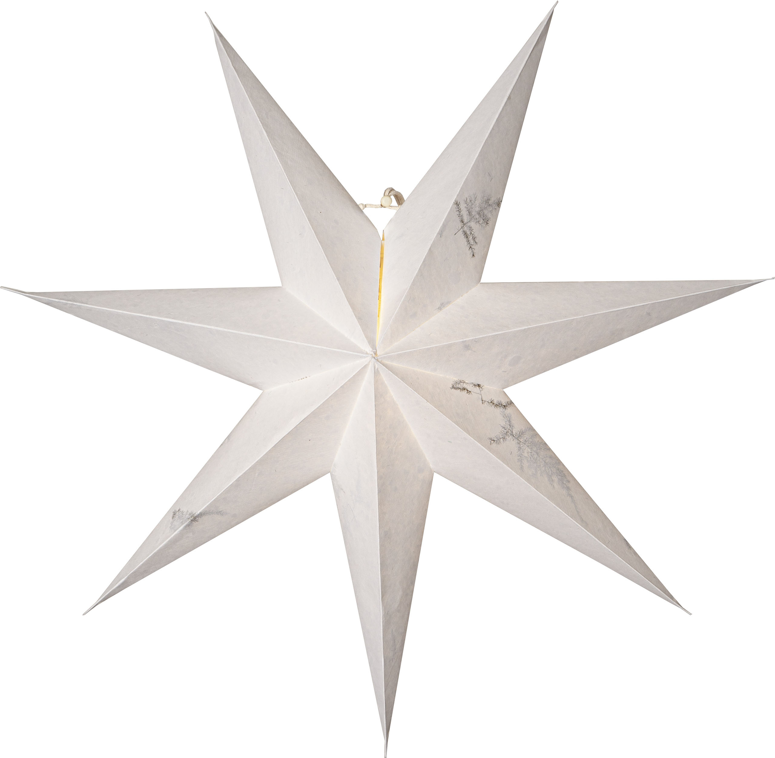 Upea paperitähti, jossa kuvioinnin muodostavat prässätyt vihreät lehdet. Tähden voi ripustaa joko ikkunaan tai seinälle tuomaan tunnelmaa joulunaikaan.