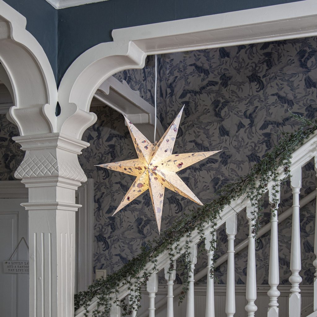 Tähdessä käytetty paperi on valmistettu kierrätetystä t-paitatuotannon ylijäämäpuuvillasta.